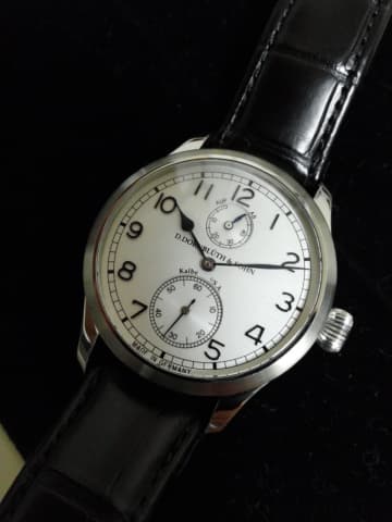 正解はドイツ時計の名品ドーンブリュートQ2010でした。ドンといえばユニタスベースのムーブメントをスペシャルチューンするので有名でしたが、この時計は2年ほど前に自社キャリバーを搭載したモデルとして発表されました。