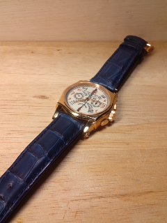 ロジェのバイレトログラードクロノですが、黒のベルトでは面白くないので、