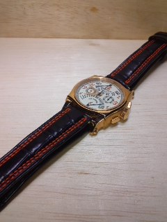 ベルトそのものの色は濃いめのハッキリした色で、ステッチは白とかアイボリーとか淡い感じの色にして、ステッチを際立たせるのが、この時計には合いそうです。