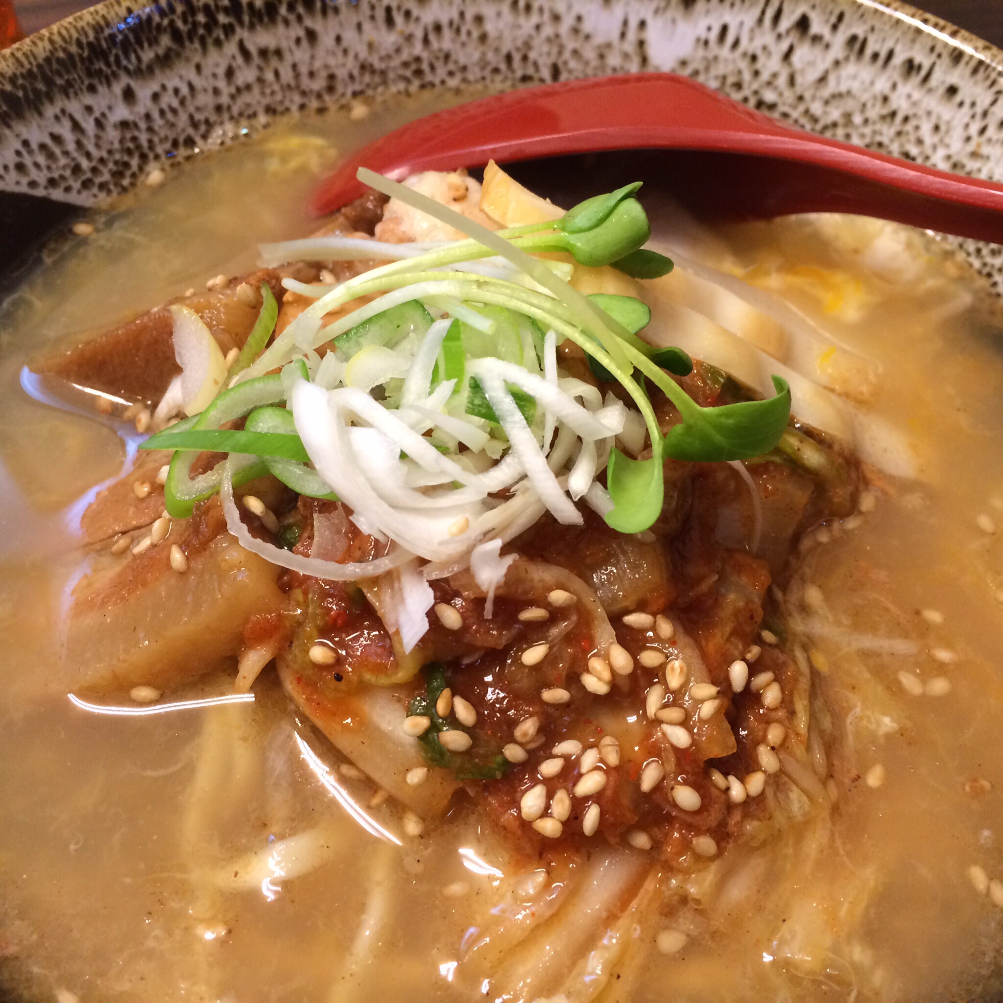 具材:納豆、和風きむち、三枚肉2枚、かまぼこ、ねぎ、白ごま、かいわれ。