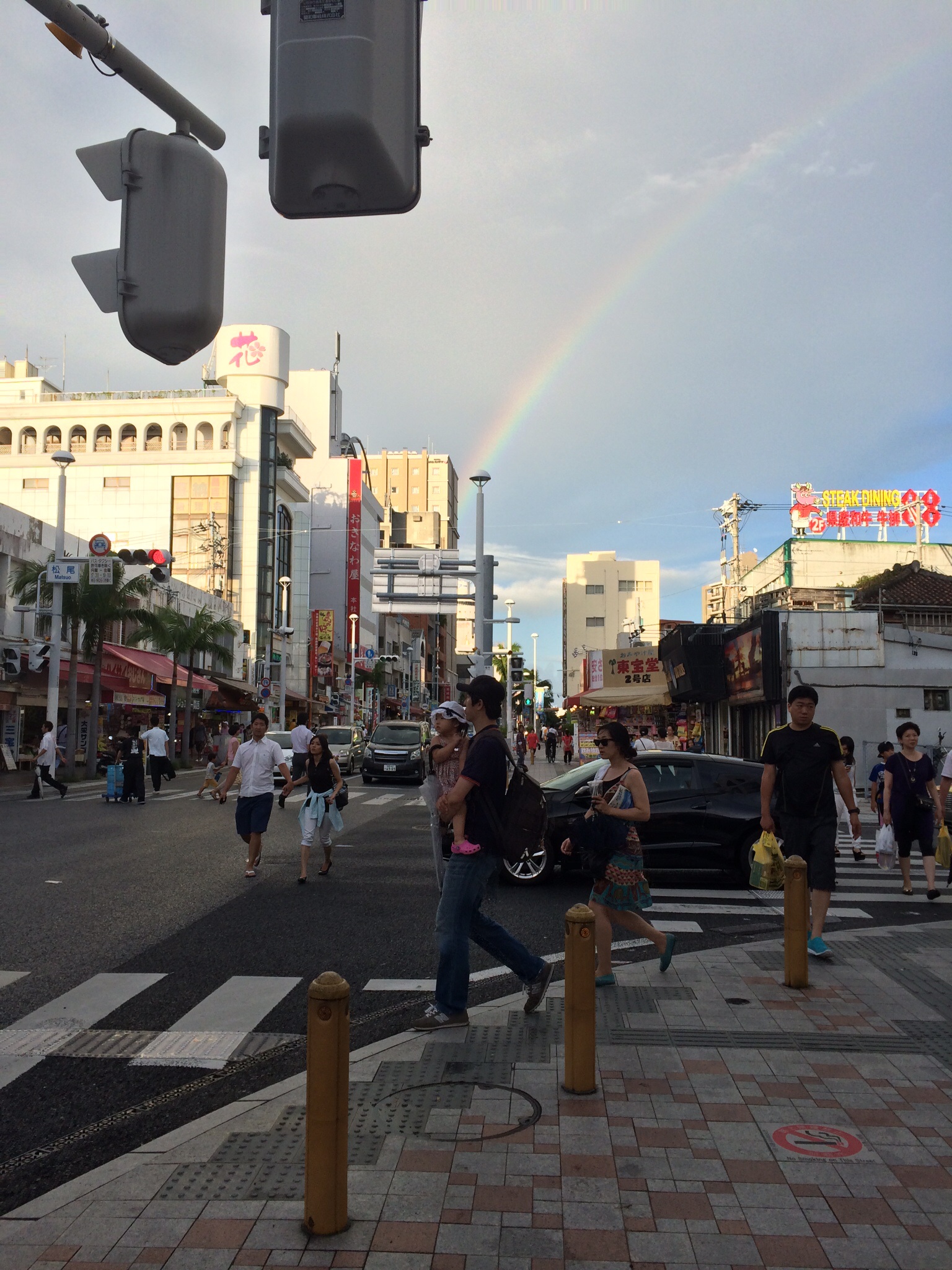 夕立ちにあったのでコンビニで傘買って、しばらくしたら虹が出てました。