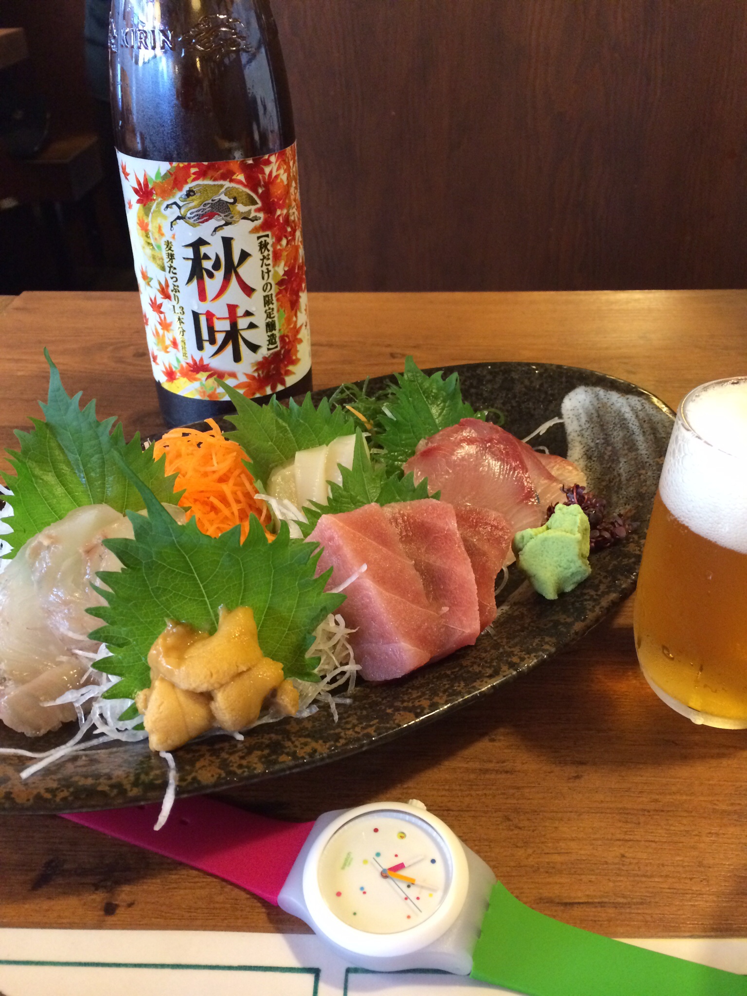 徹夜で伸びた汚ちゃない髭をみて、三点盛りにウニとヒラメをサービスしてくれました (^-^)
