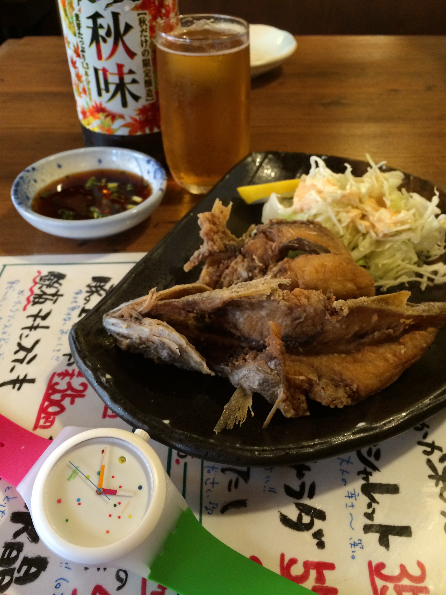 ウェルダンの黒むつ唐揚げを進行ちうです。