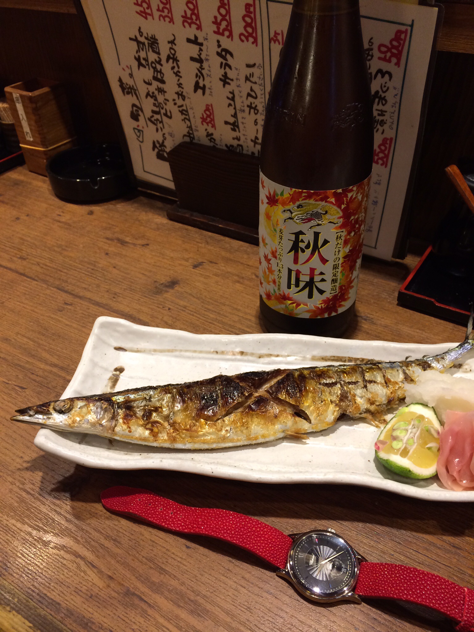 秋のビールと時計の裏側で癒やされてる変なオーサンでつ。