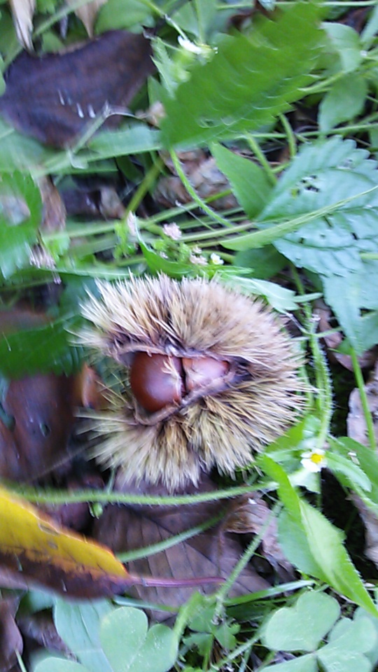 日曜は近所の森林公園へ子供4人+一匹連れて栗拾いに行きました。