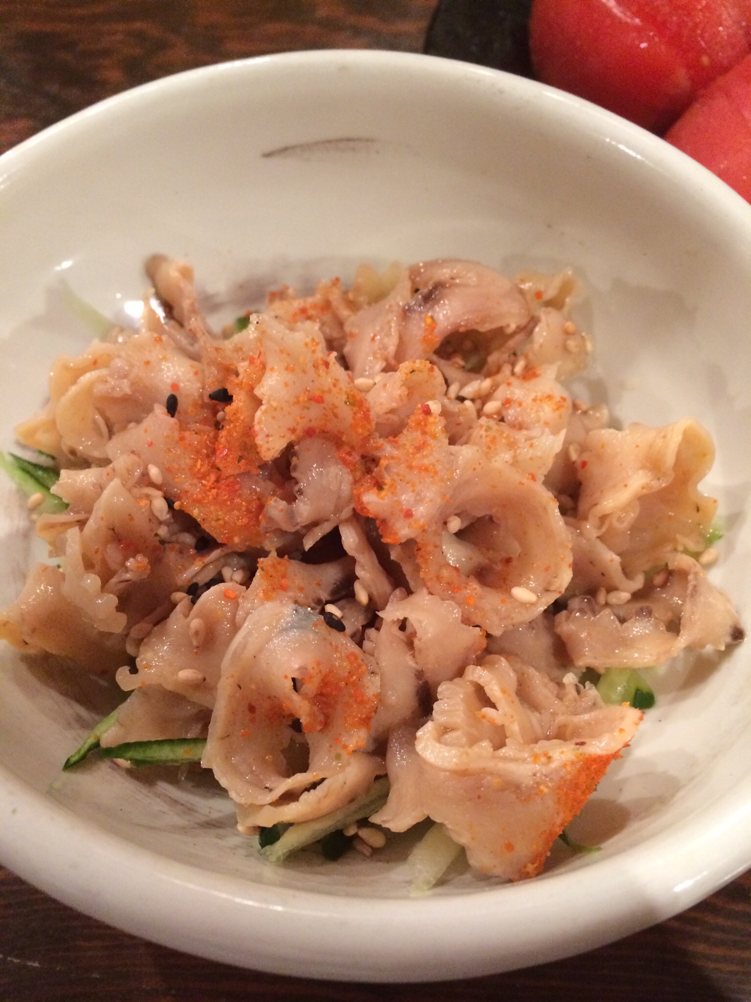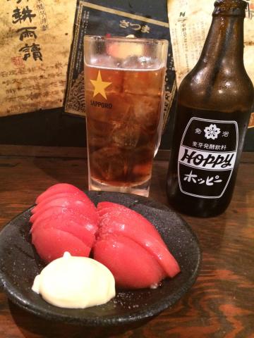 今日のソト飯(>_<)は、トマト、酢モツ、、ガツ刺し、、、でした。