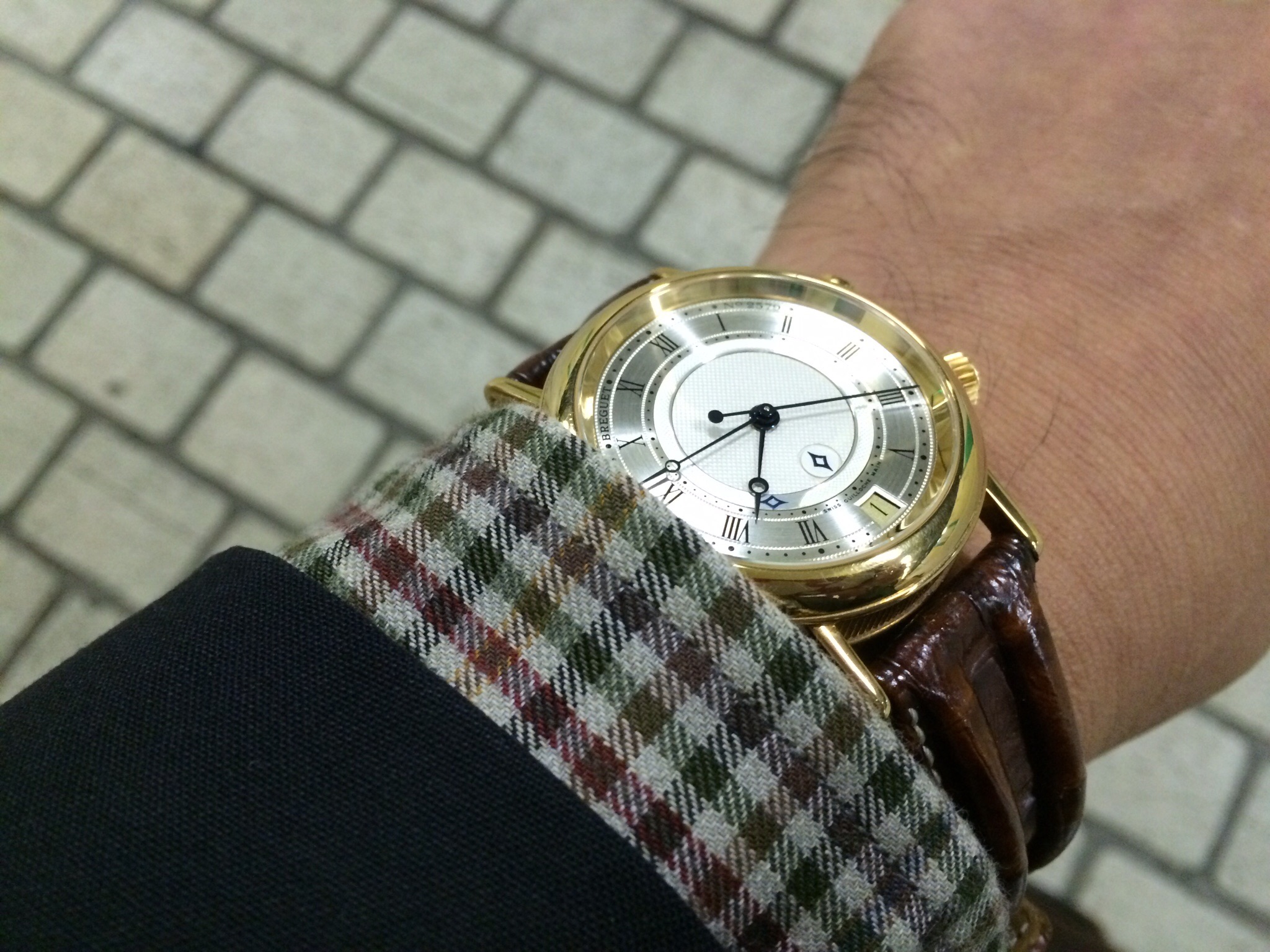 ブレゲって、本当に綺麗な時計ですね。TPOを選ぶ時計でもあると思いますが、よくもわからず生意気な表現かもしれませんが、シャツとジャケットがピッタリあってるように思います。