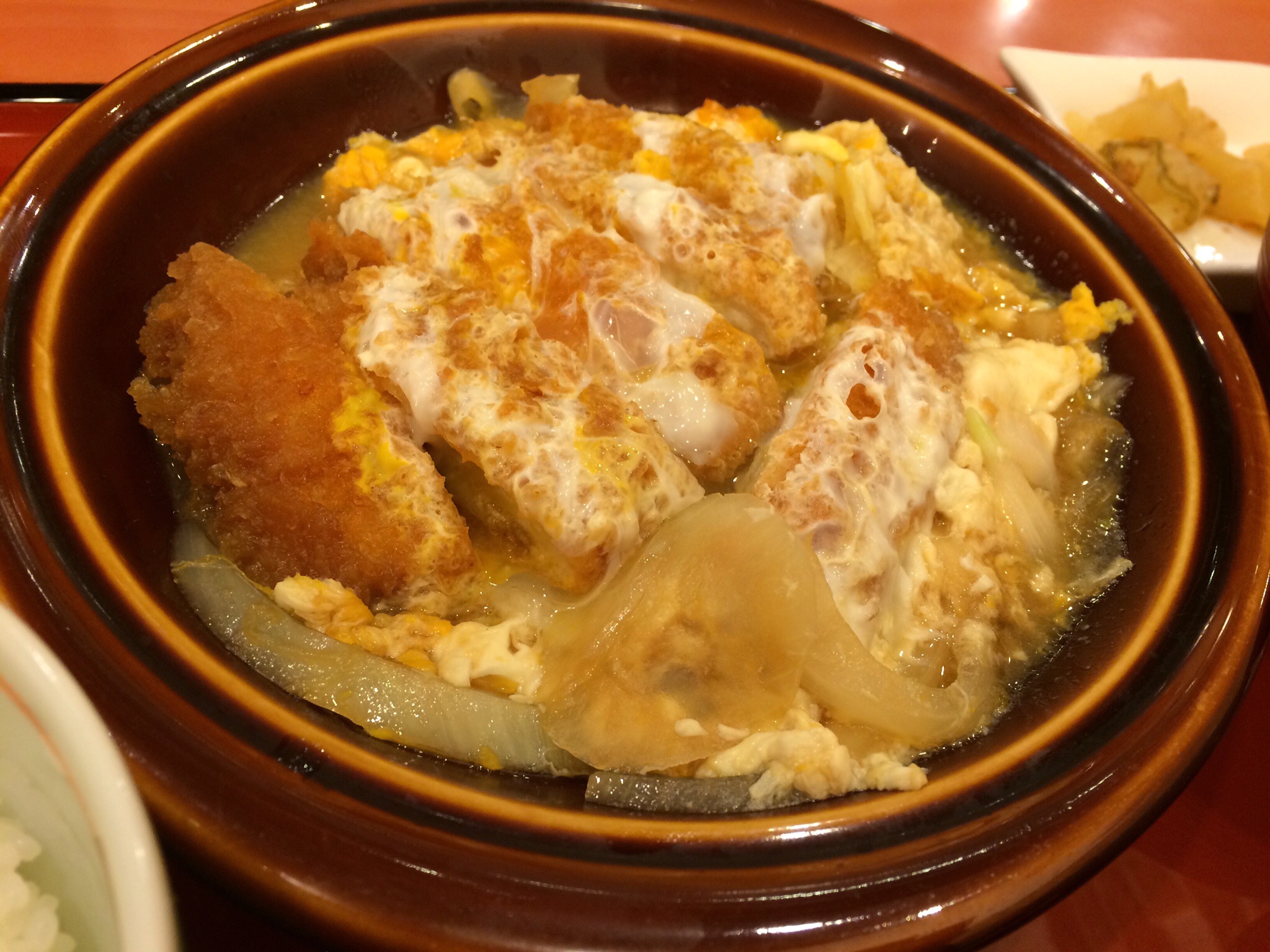 やっとこご飯に繰り出せた今日はファミレスのカツ煮になりました。