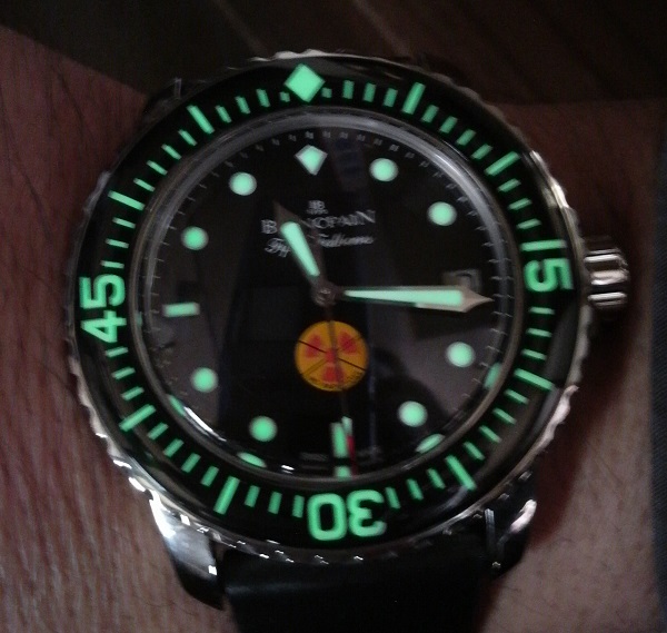 300m防水ですし、回転ベゼルですし、暗いところでも夜光でバッチリ見えますし、文句無しのダイバーズウォッチです。