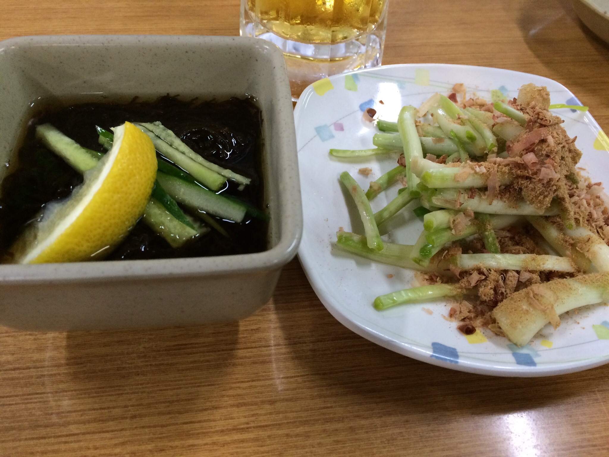 島らっきょうと島もずく。