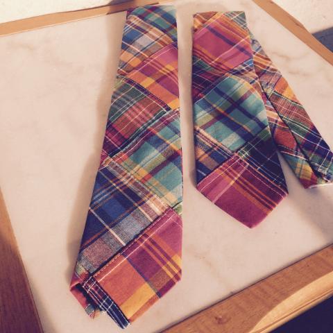 クレイジー about クレイジー Madras な当方は、サラのネクタイを持ち込みリボンに加工をお願いしたのでした。