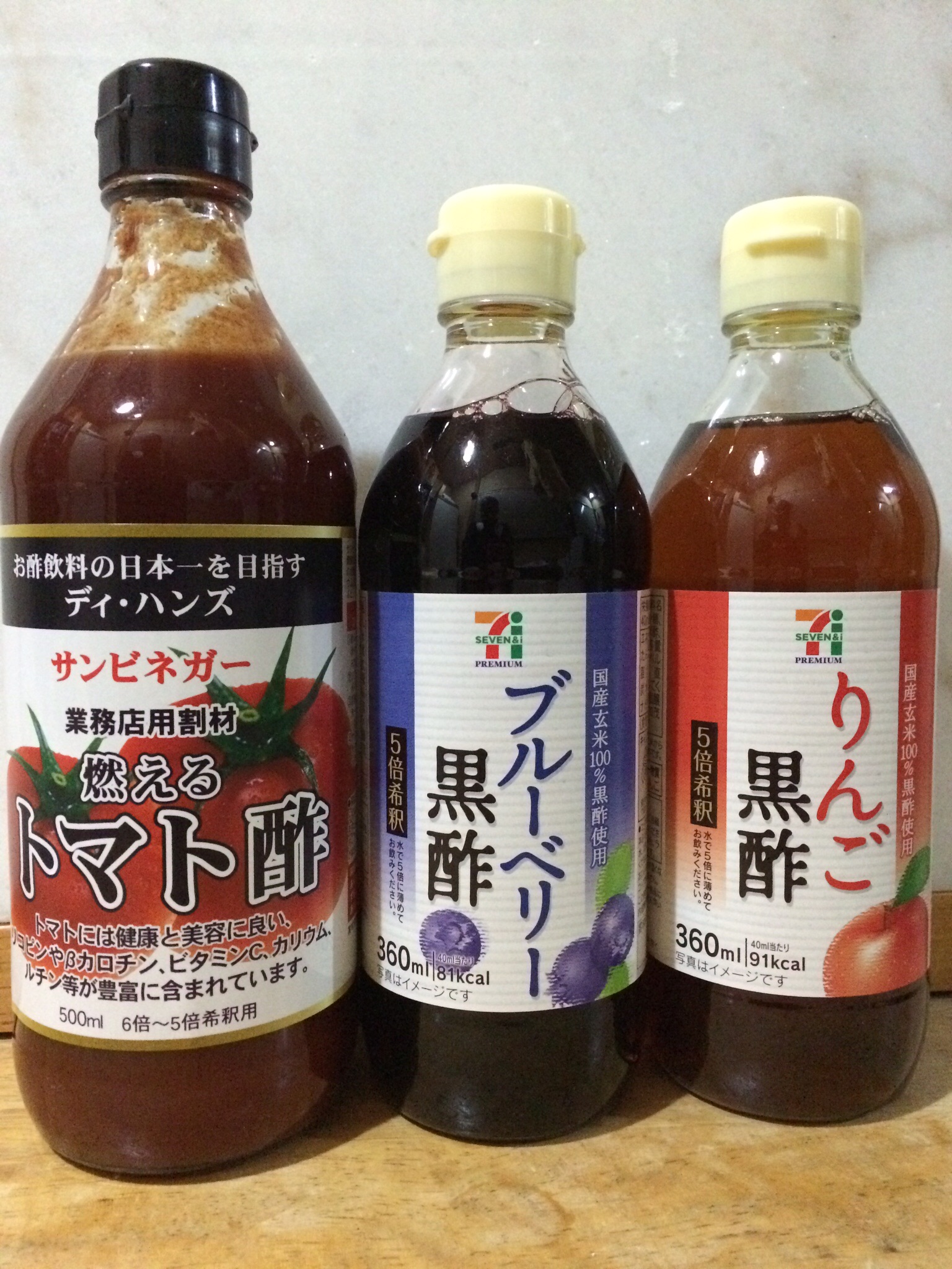 今週スーパーでみつけたのがこのリンゴ黒酢とブルーベリー黒酢。(5倍稀釈)