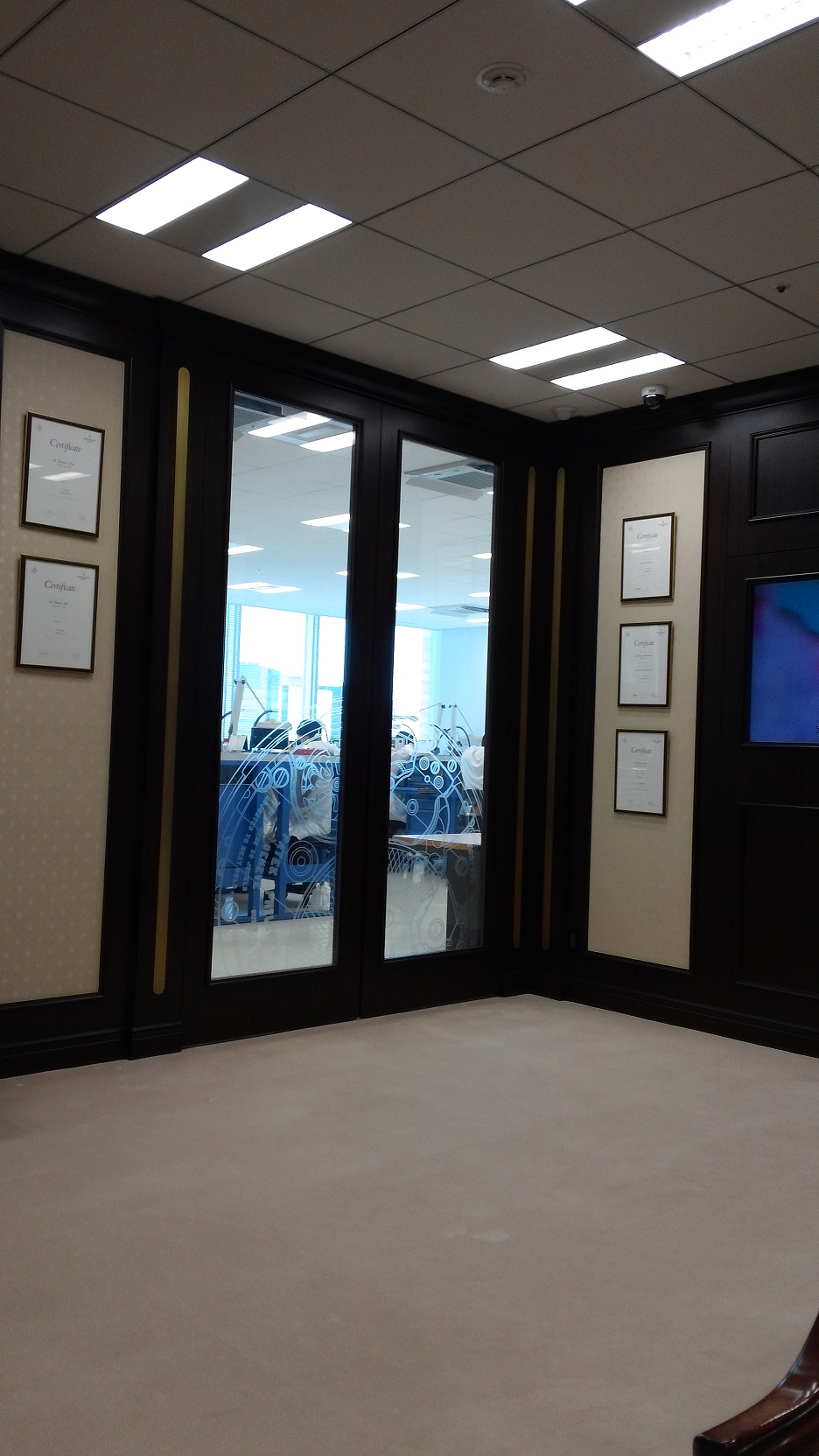 ガラス越しにパテックの技術者達が作業を行っているのが見えます。
