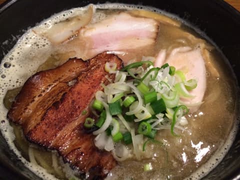 このラーメンのトッピングはチャーシュウと豚の角煮でしょうか?
