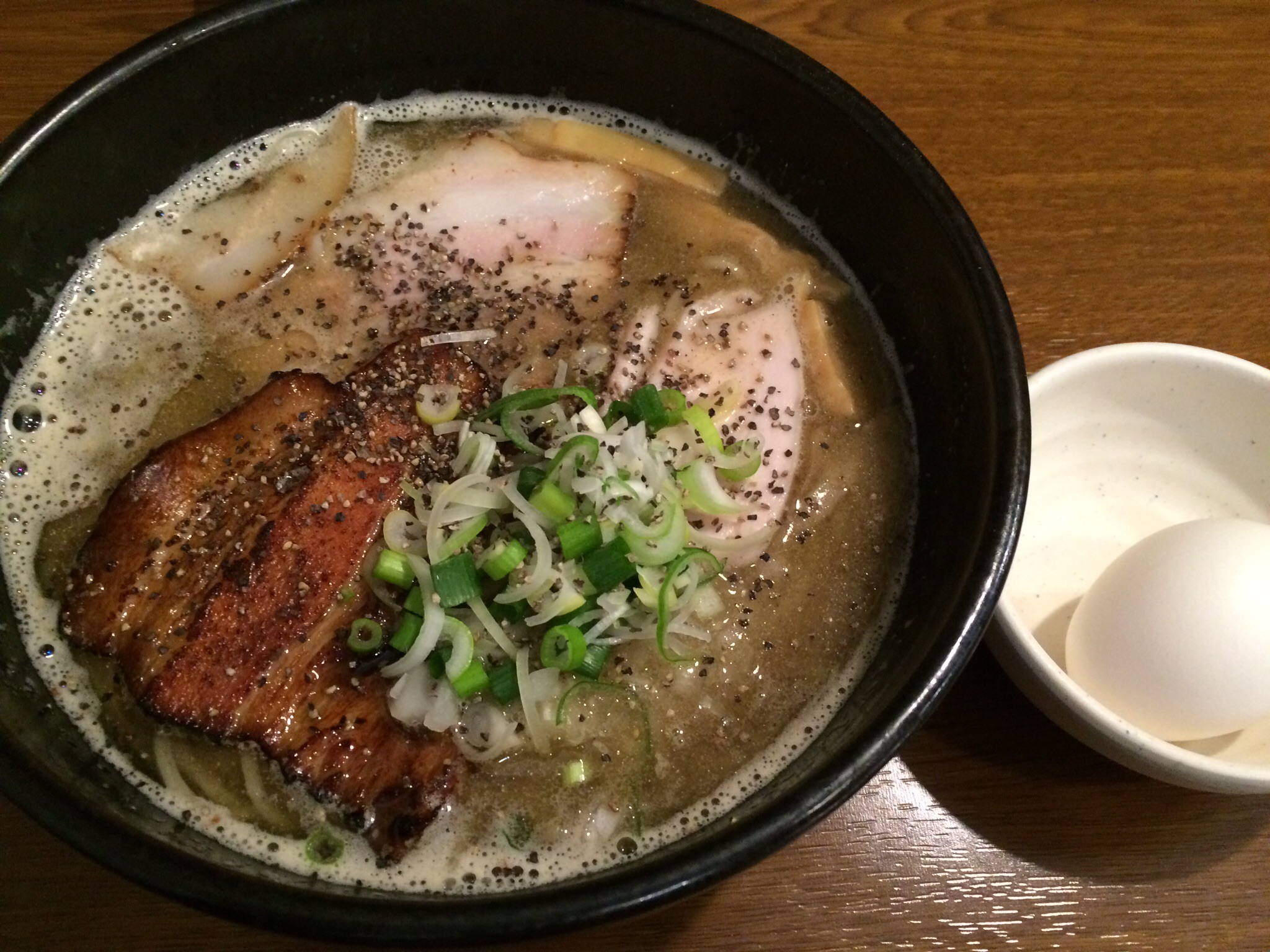 後半は麺に禁じ手の生卵を投入っ‼︎