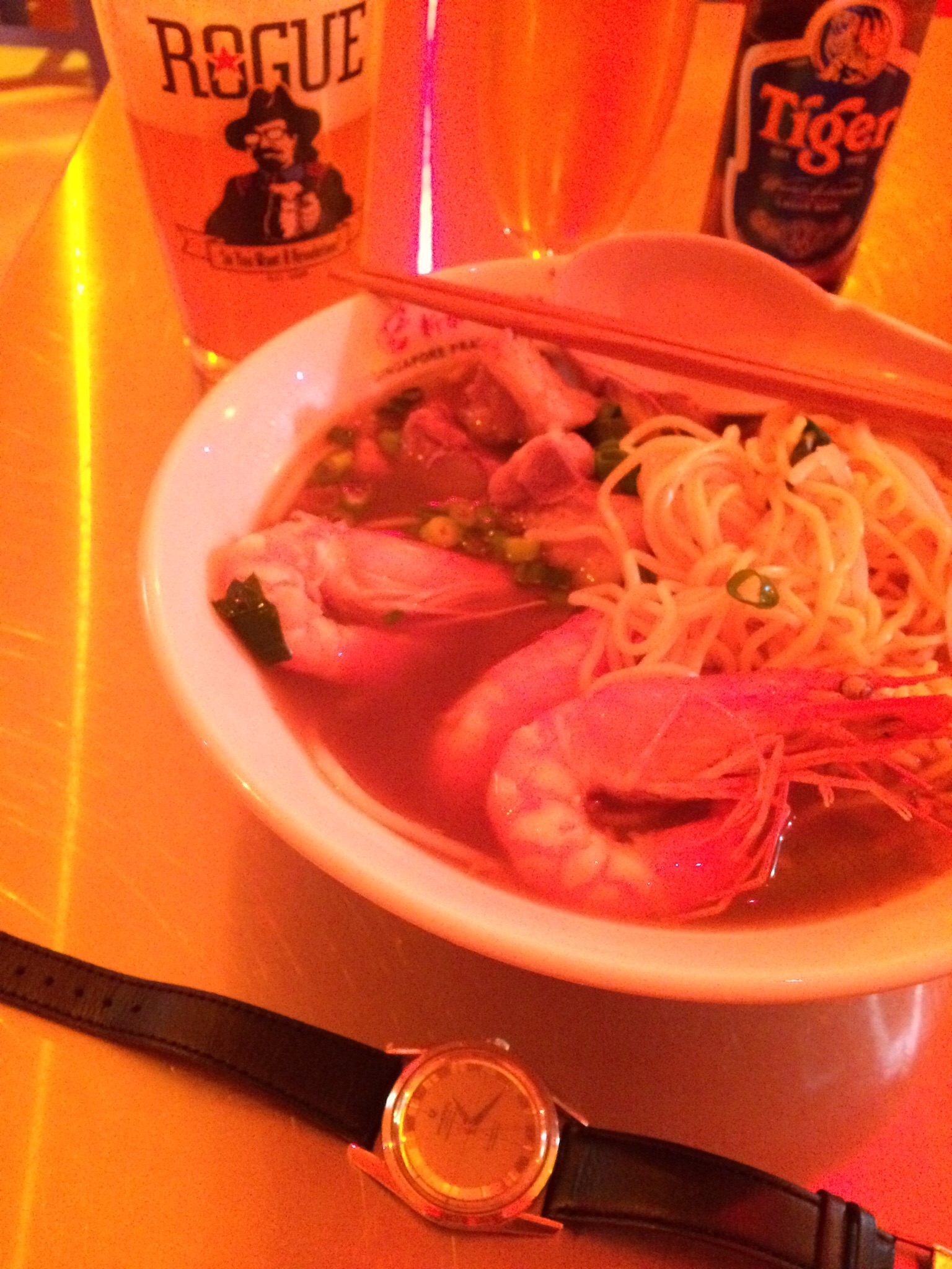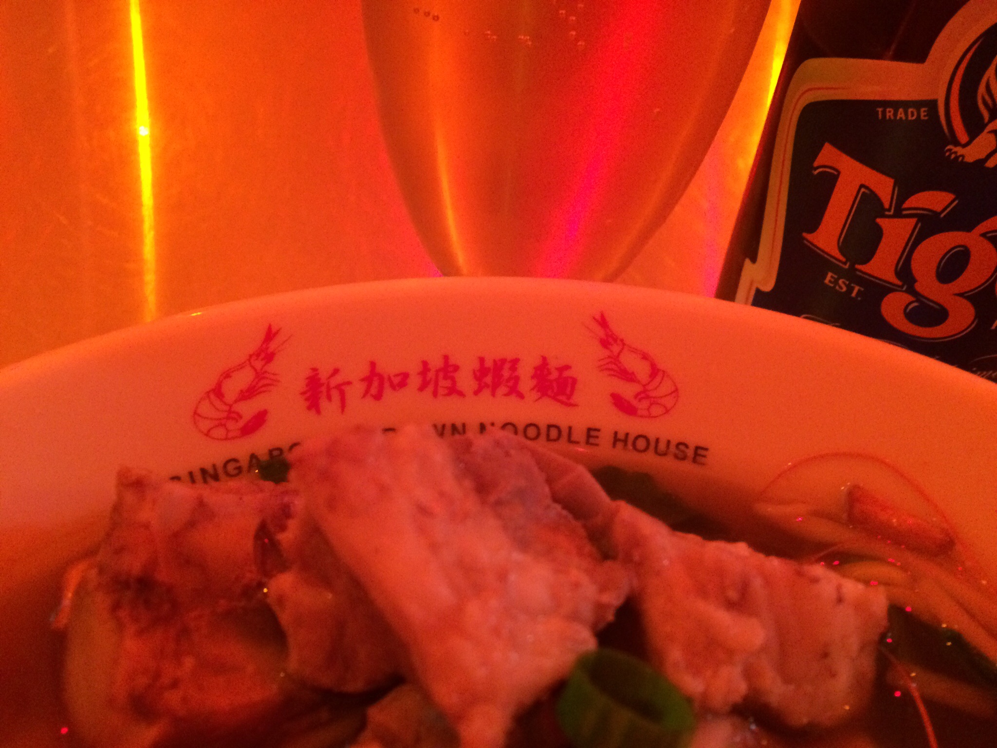 年中無休24時間営業の⚫︎しざんまいにて夜ご飯、飲み直して「汁もの」が欲しくなり怪しい室内照明のシンガポール麺屋に入ったのでした。