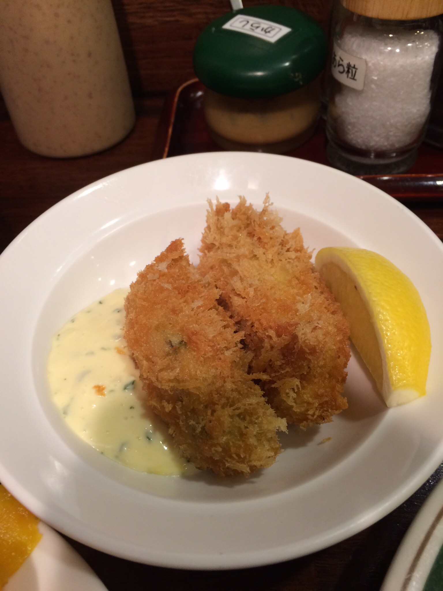 サイドメニューのカキフライ2個付け、100円増しの「カレーちょい掛け」
