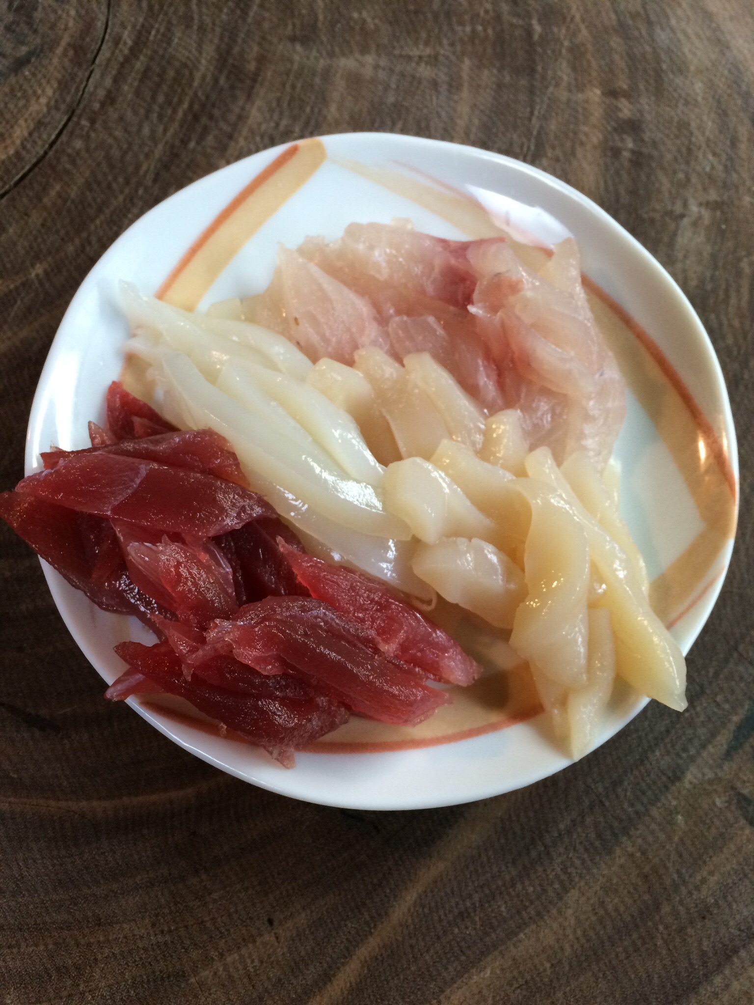 イカがあると良いですね。ネタは太さを揃えた細切りで。