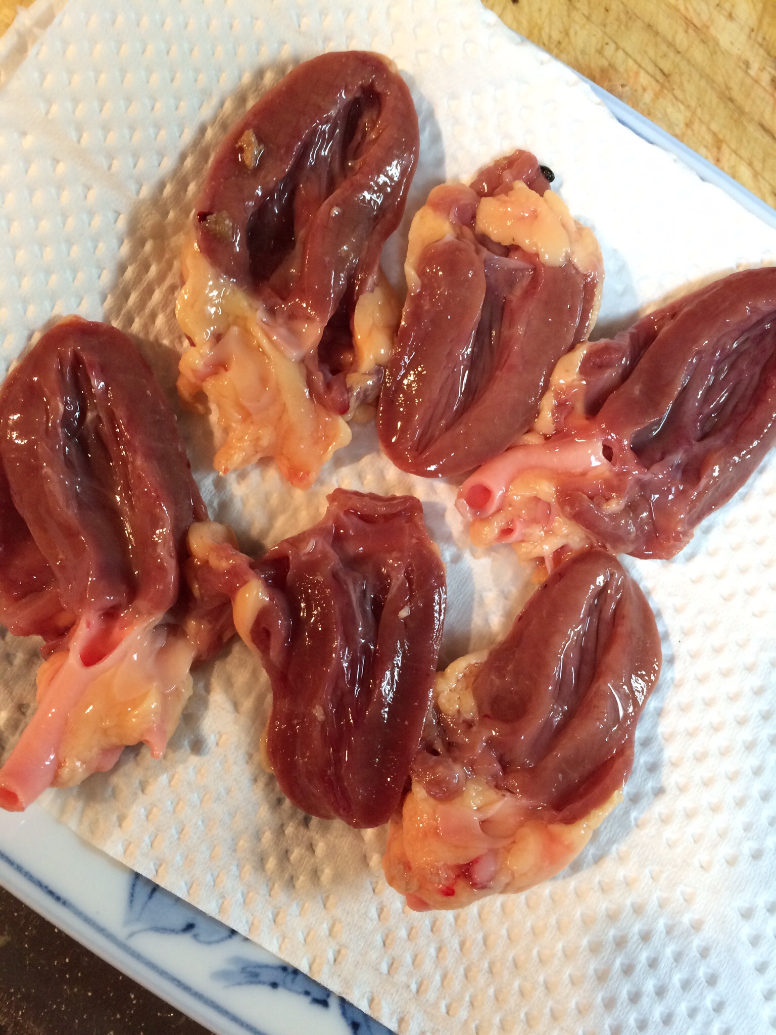 最近はスーパーの鳥レバーでも『ハツから繋がって』売っているので、レバー煮のために買ったオマケみたいなもんですた。