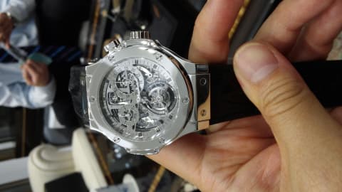 このウブロ、全面ポリッシュのPtケースでスーパーヘビー級でした。