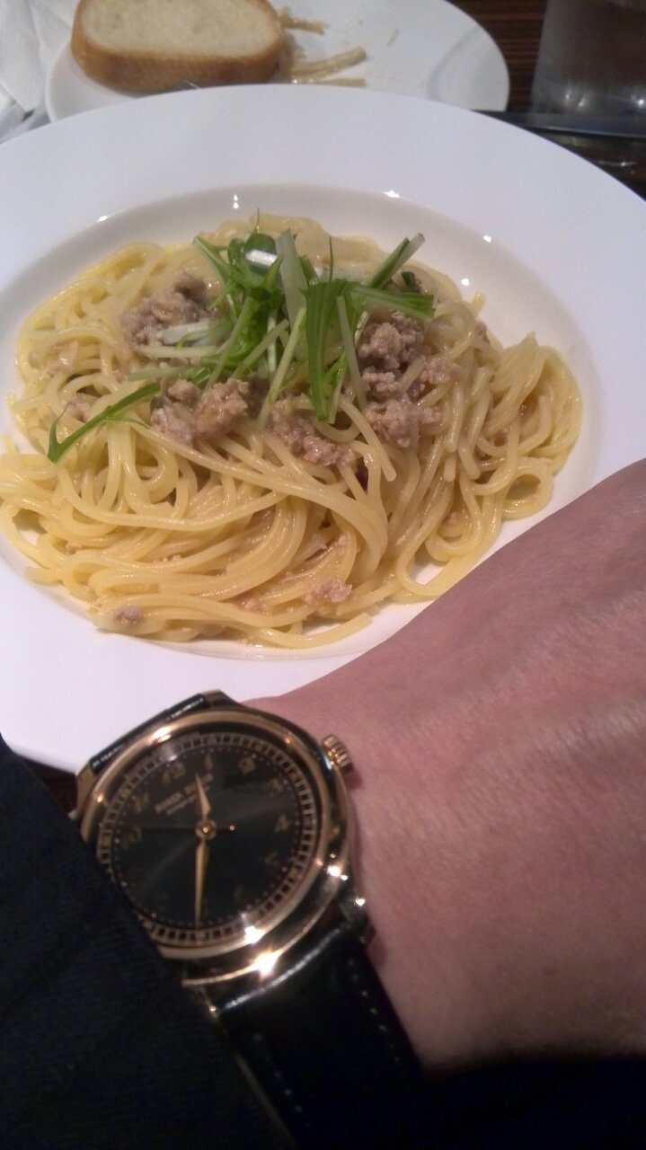 時計が一緒ですが、昨日の昼と残業飯晒します。