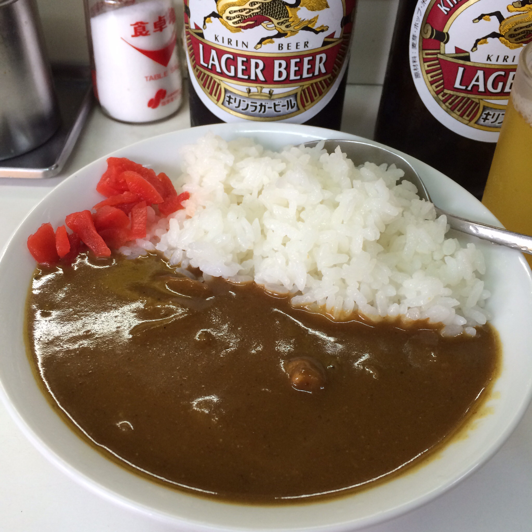 豚骨スープで煮込んだカレー(小)が来る頃には美入るも2本目。
