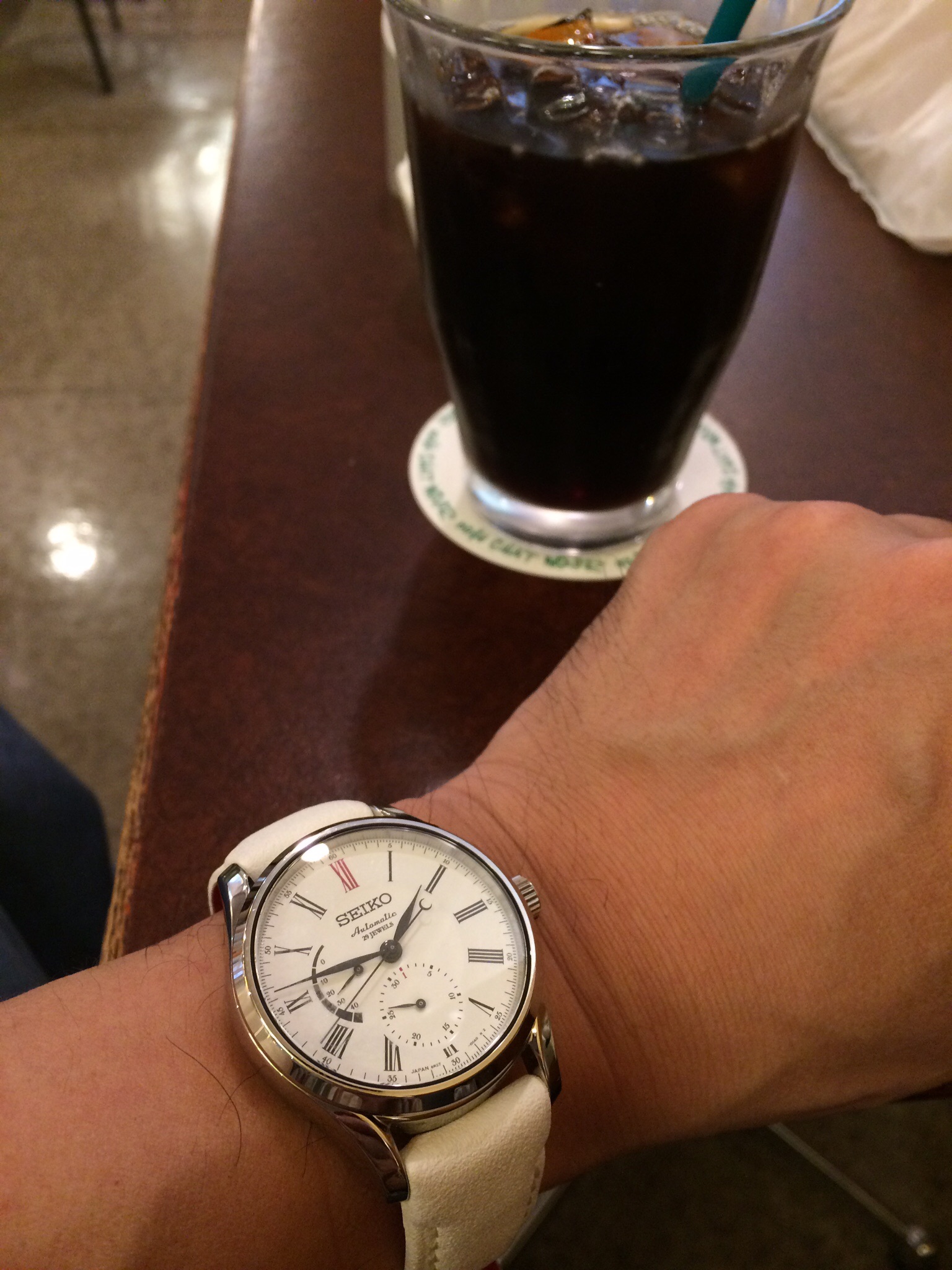 ご飯も本人も爽やかでないので、せめて時計だけでも白ストラップでww