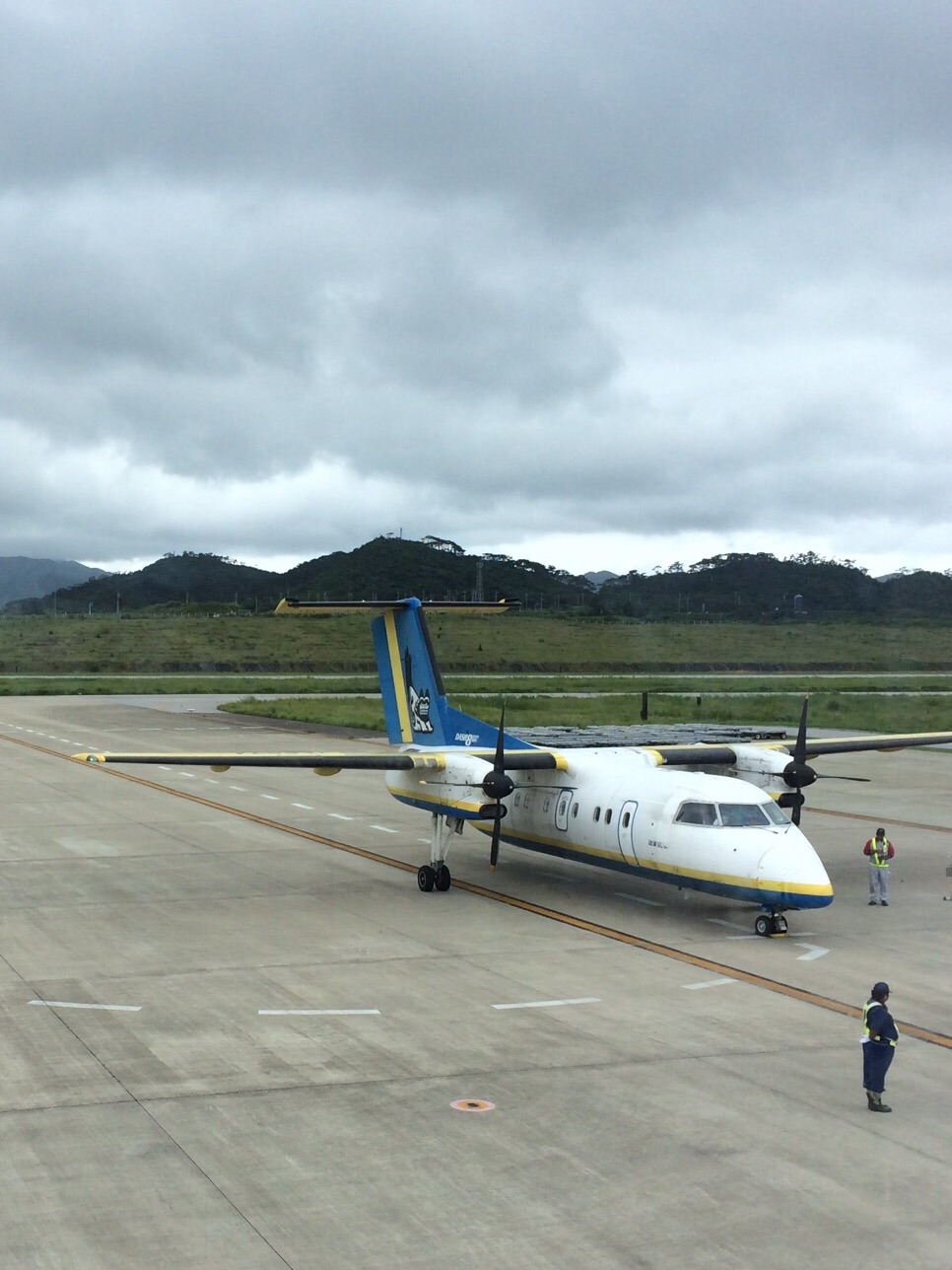 シーサーマークの付いたバスのような可愛い飛行機で宮古島に移動しました。