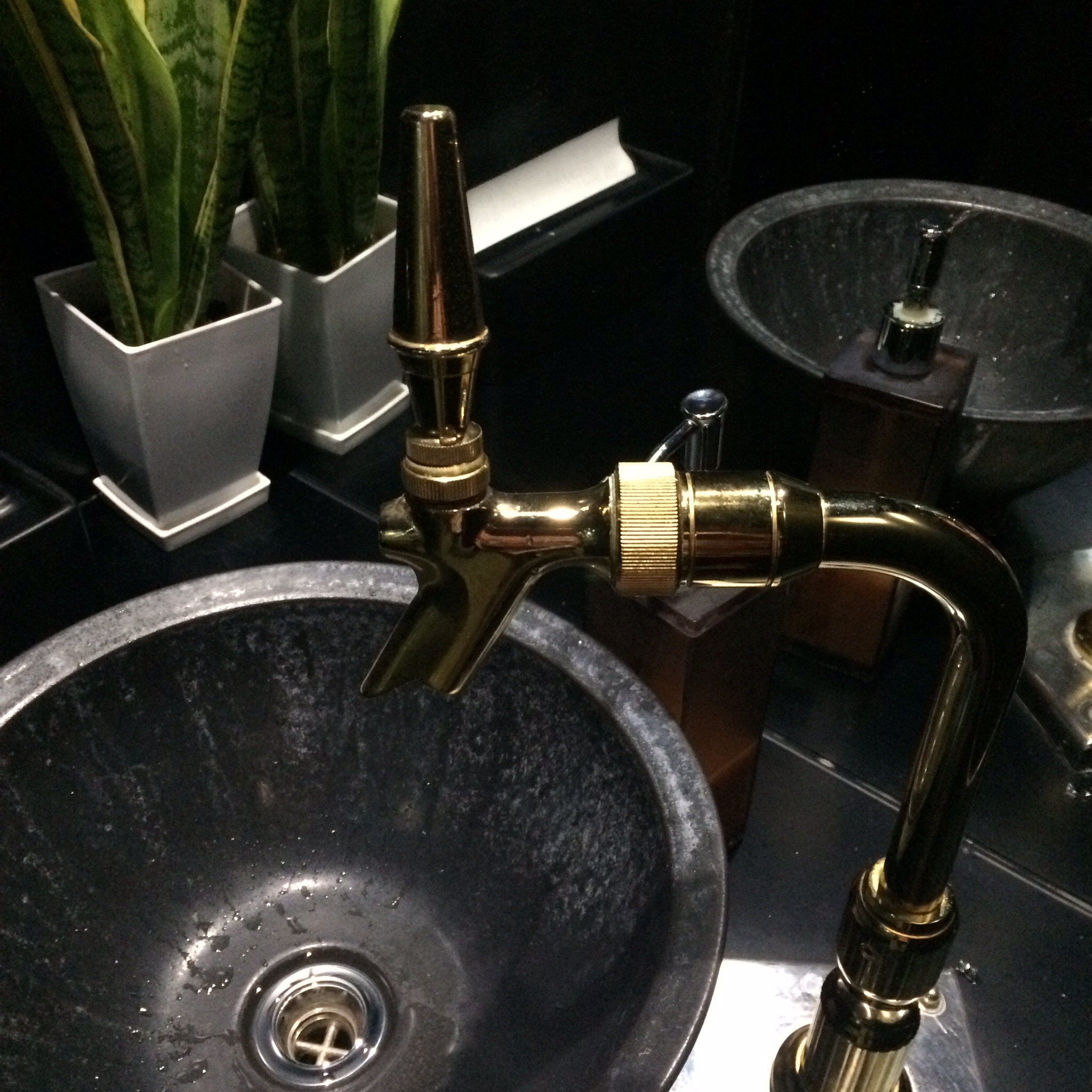 外観、洗面所のハンドルがビールサーバーのタップ