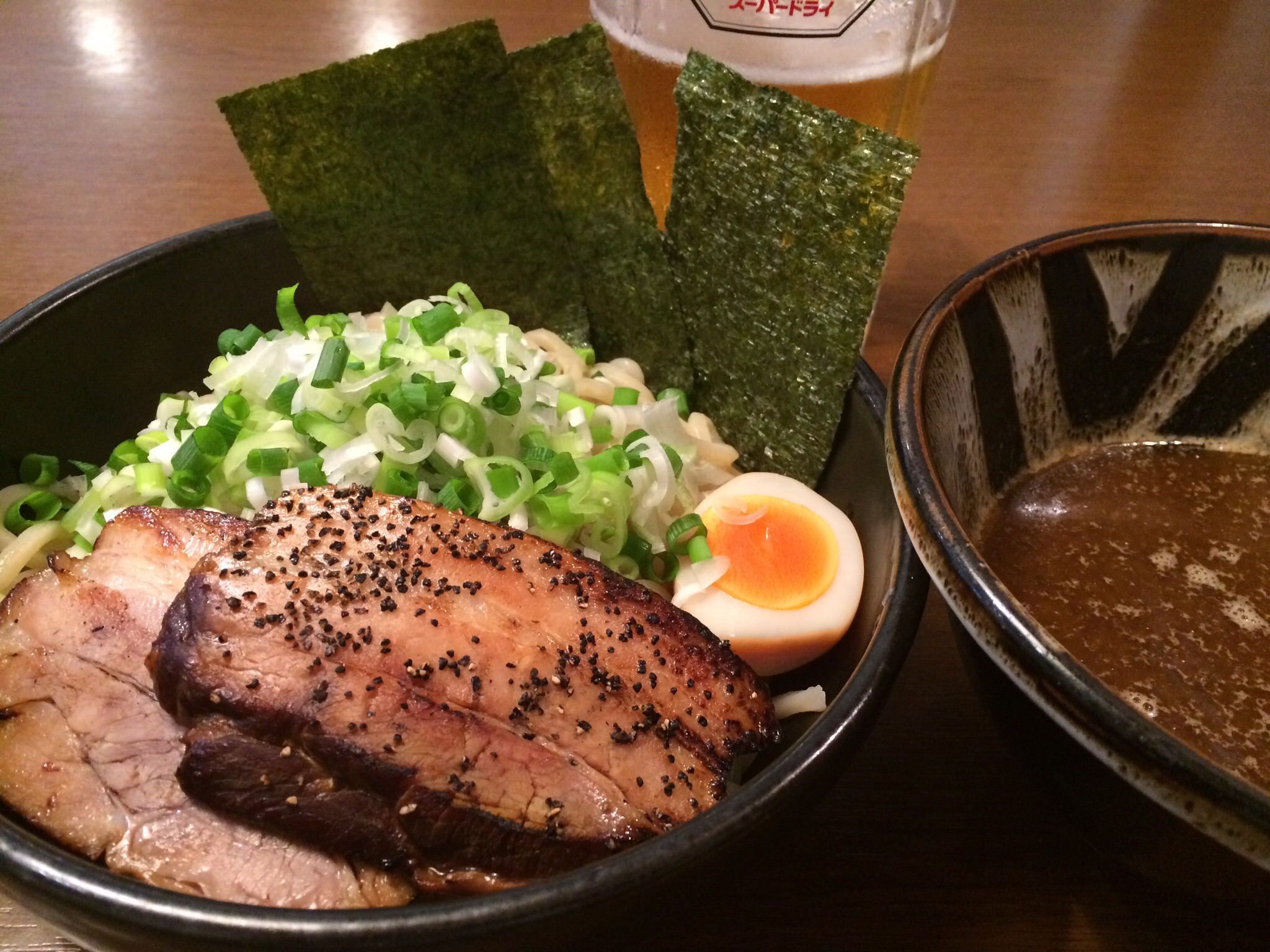 焼豚とネギ増量のつけ麺を待ちます。