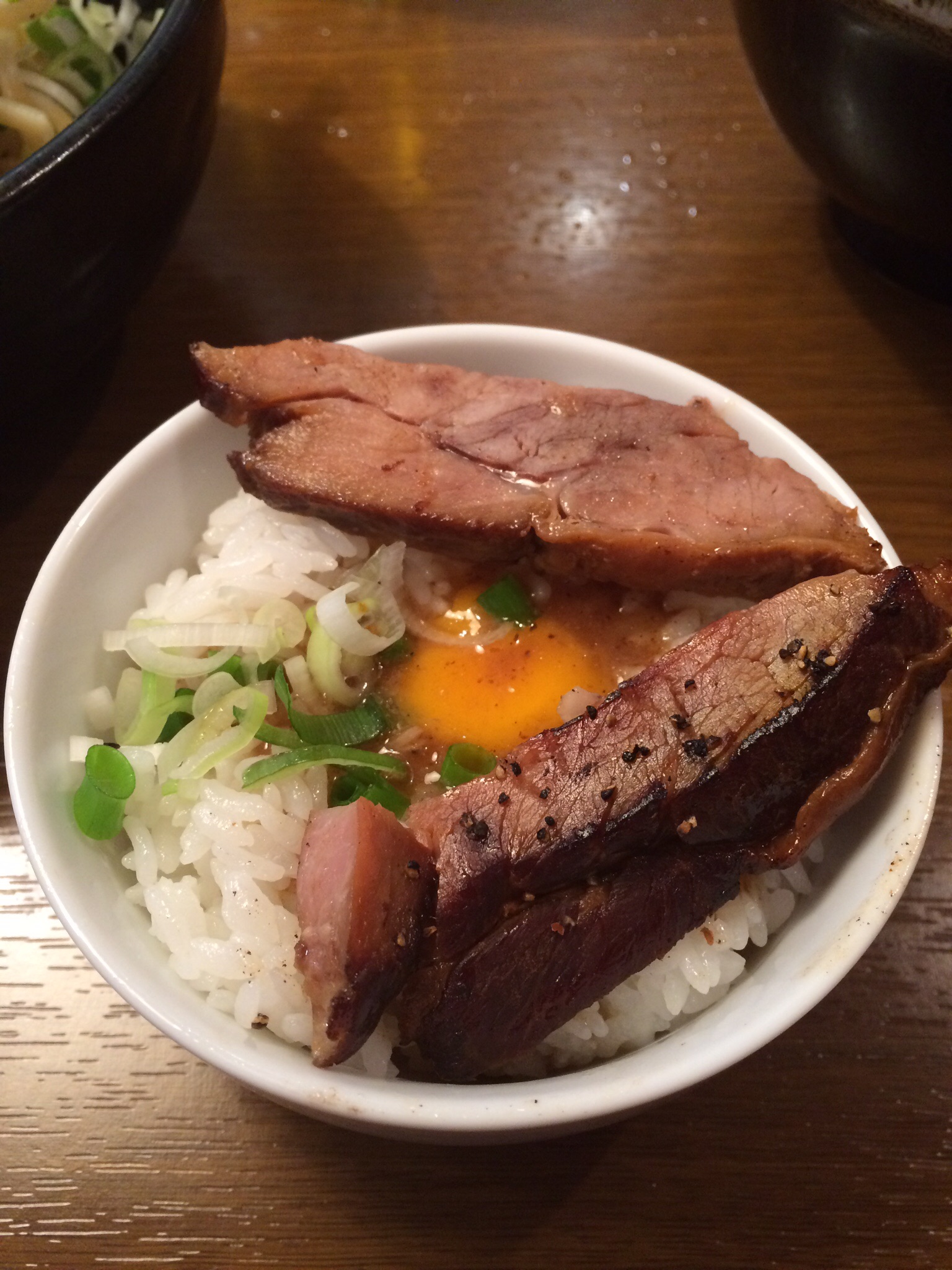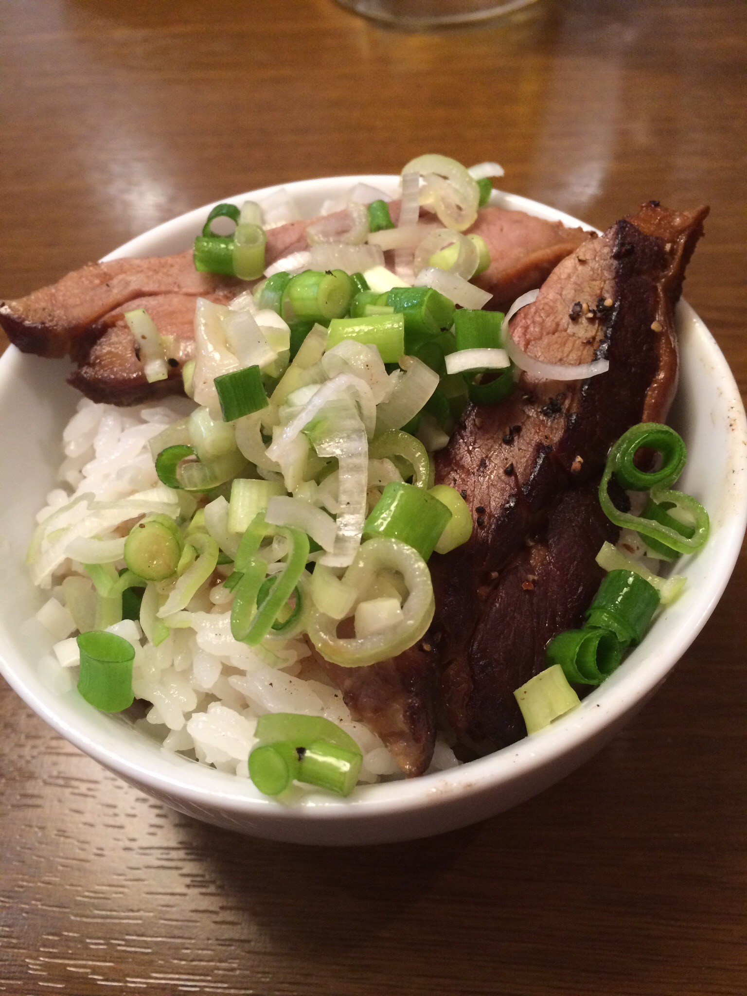 さらにネギを移動して「ミニ焼豚丼」(このお店のメニューには無い)の完成です (^_^)