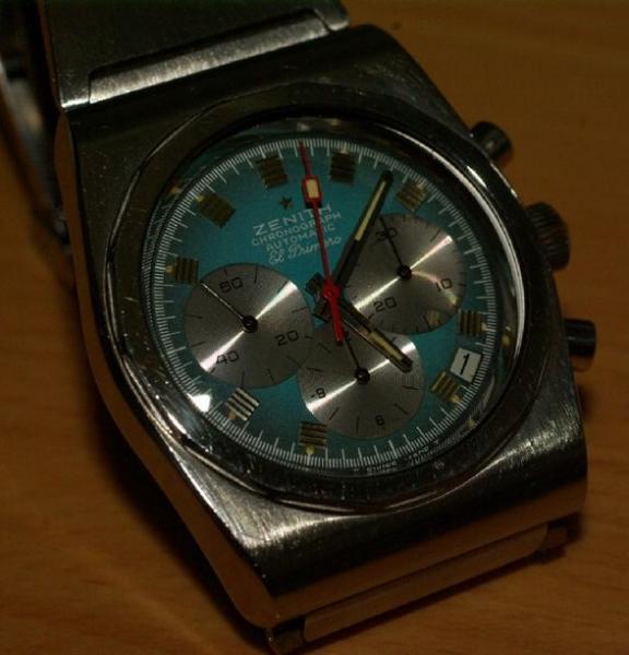 私の所持しておりますホイヤーの復刻モンツァはケースサイズ38mmでやはりよい感じですから、エルプリメロには40mm以下のケースが最適と思われます。