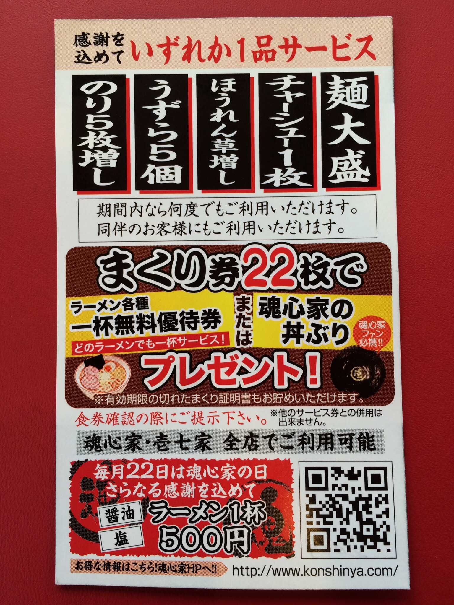 一回で割引券がもらえ、次の日使えばサービス焼豚がトッピング (^_^)v