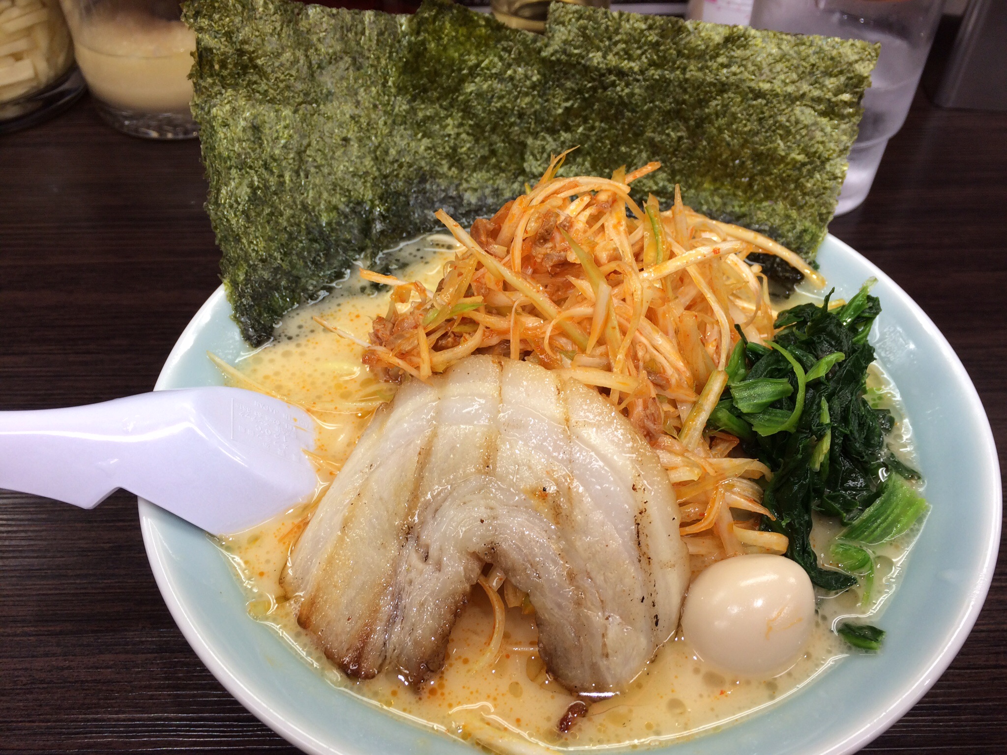 横濱家系ラーメンにて、ネギらーめんを注文。