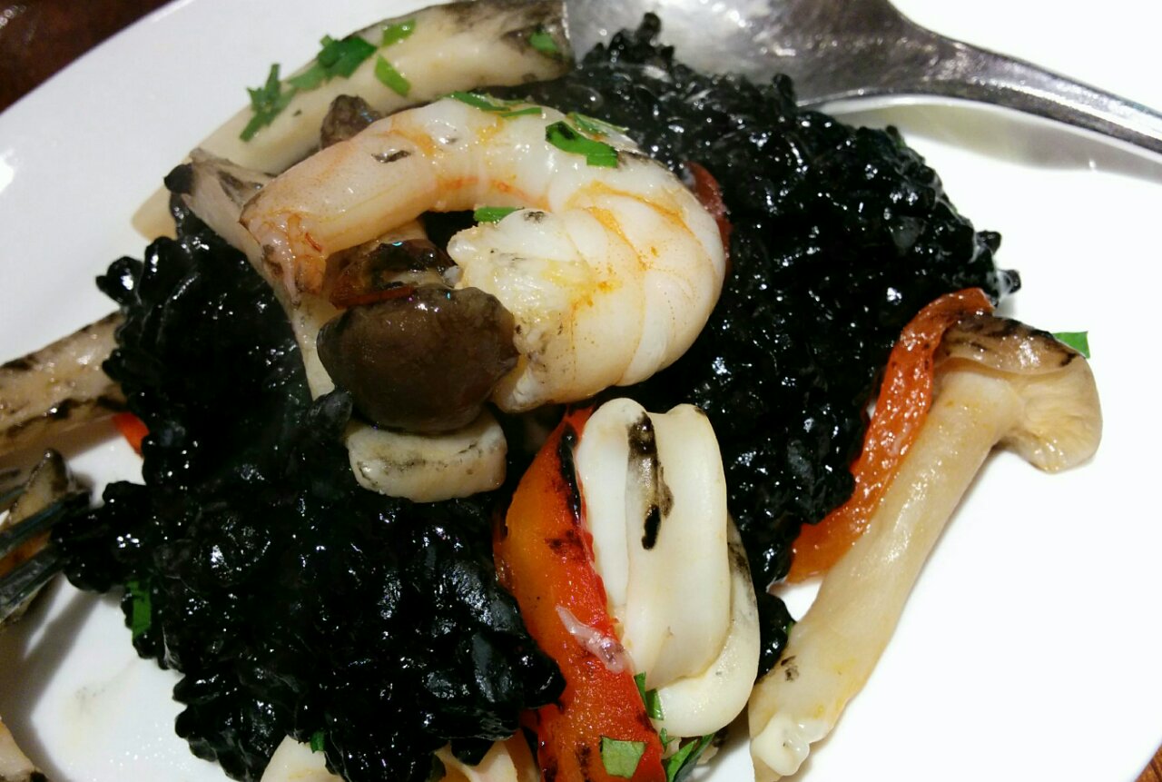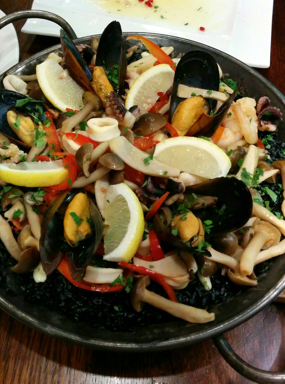 パエリャが具沢山でイカスミだとわからないのでアップを。