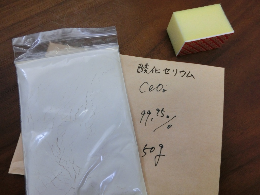 レアアースでもある酸化セリウムというのがレンズなど綺麗に磨けるということで、早速入手してみました。