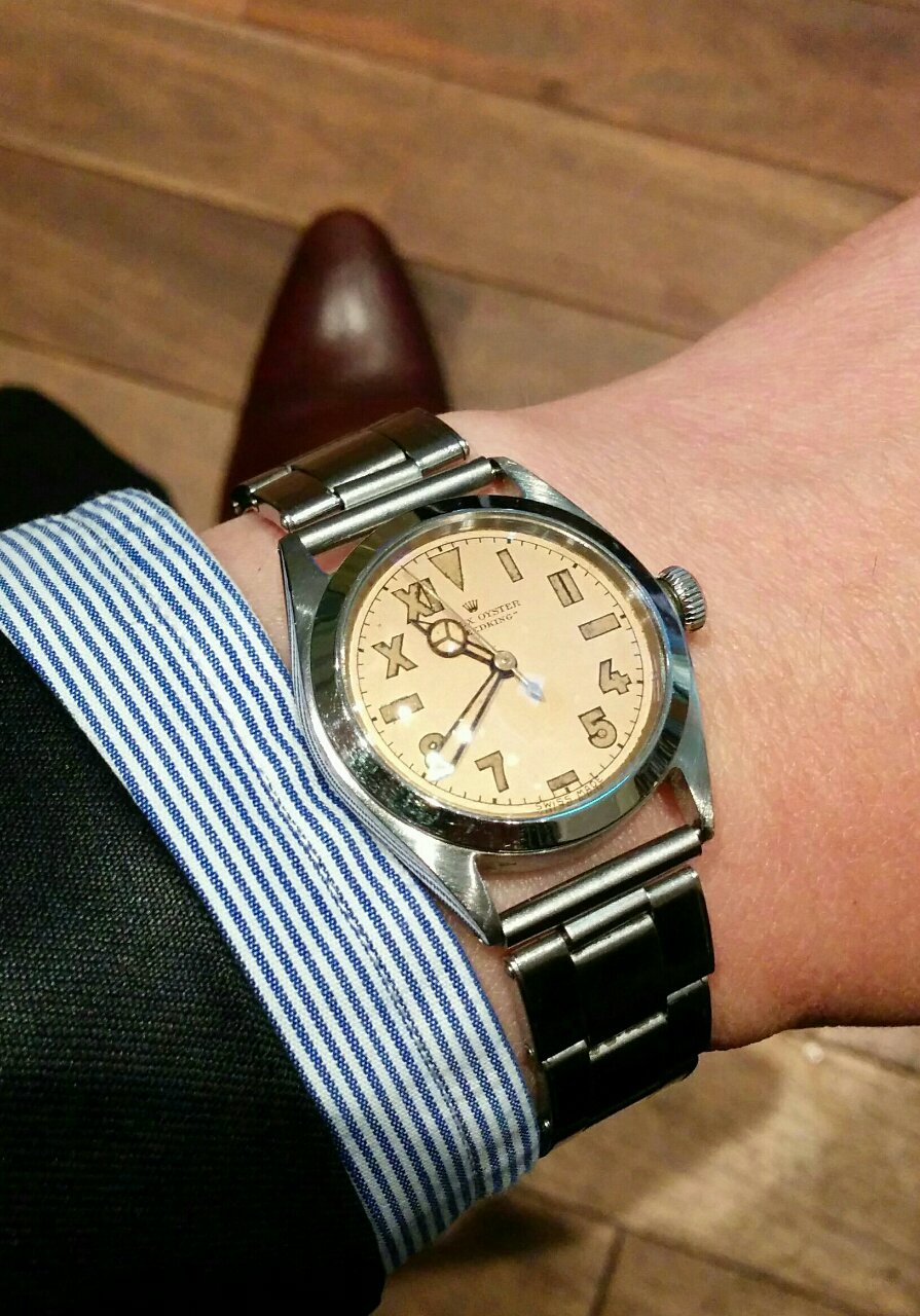 今日はローマン&アラビックのピンクダイヤル。
