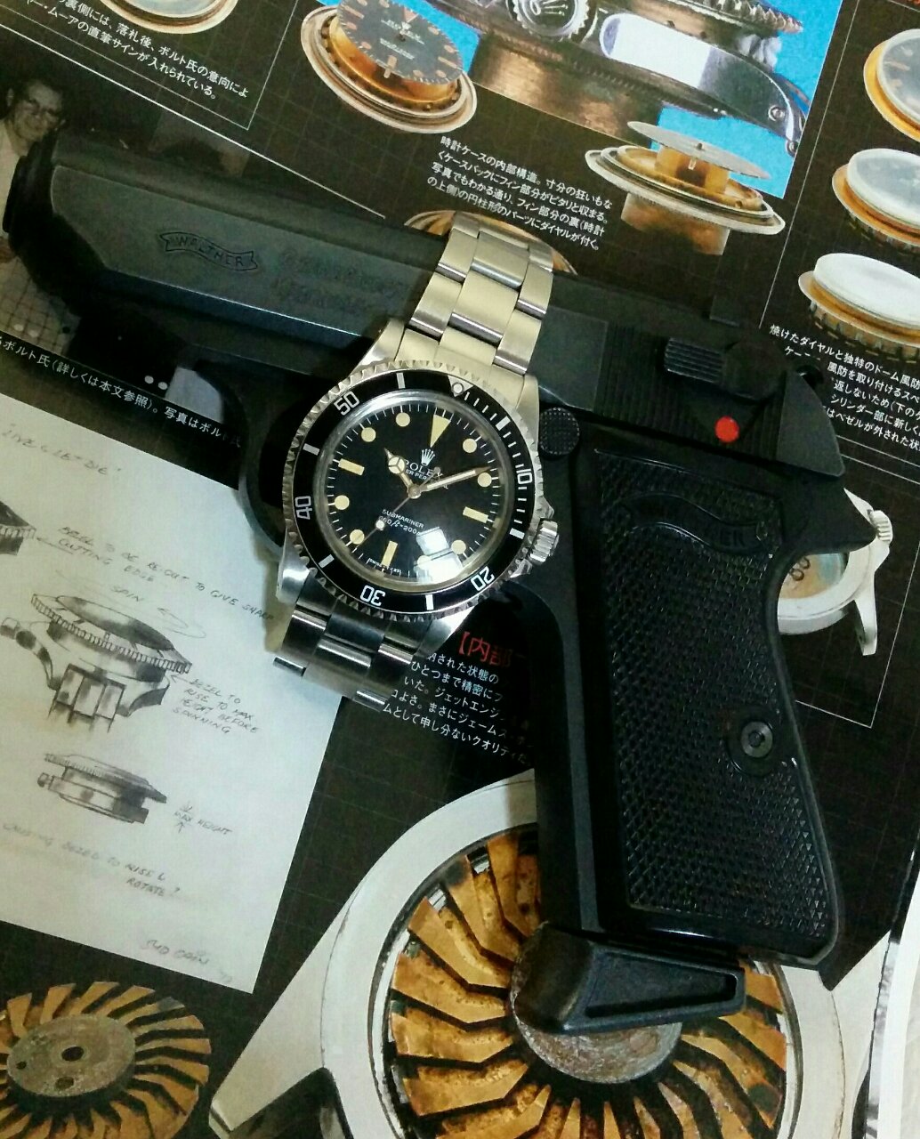 その後、ギミックとして同じロレックスが登場してサブマリーナのベゼルが回転