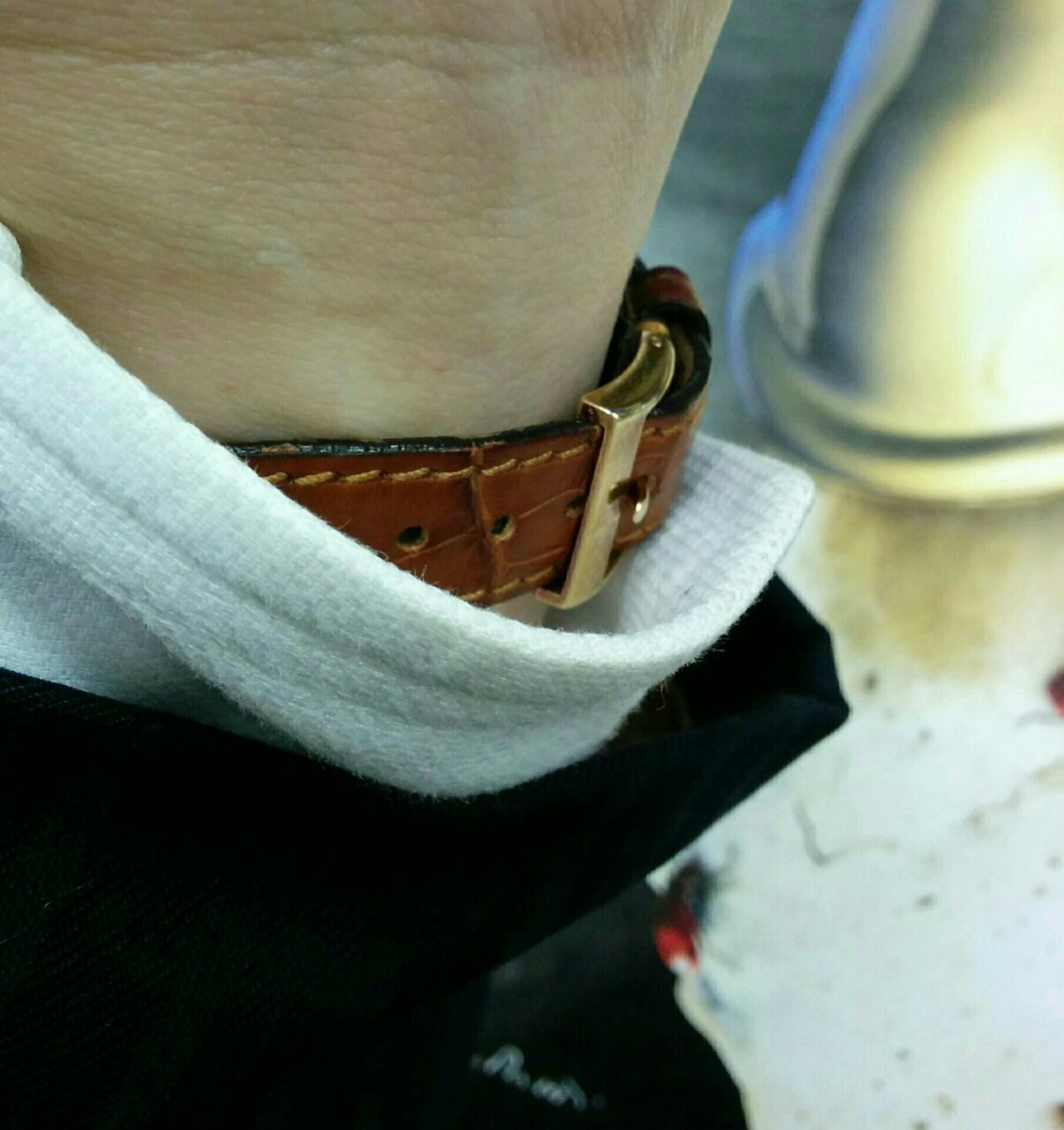 昨日リョウさんが時計の革ベルトでカブレて大変な目にあわれたそうでこれを思い出したわけです。 シャツのデザインが古いのでノータイもしくは太めのタイを合わせないと合わないのでクローゼットで眠ってました。