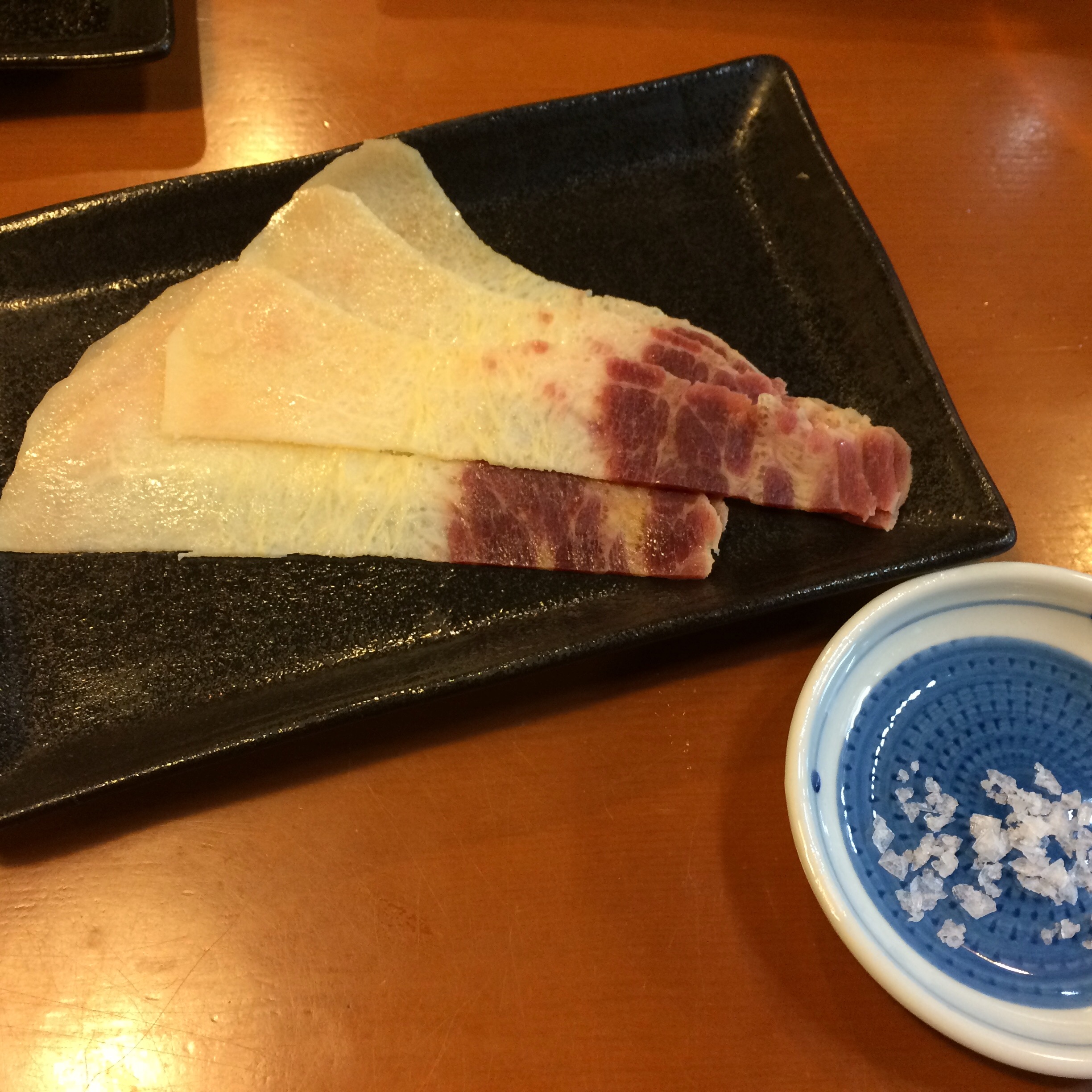ハツ刺しは牛さんのレバ刺しのように塩ゴマ油で頂きます。