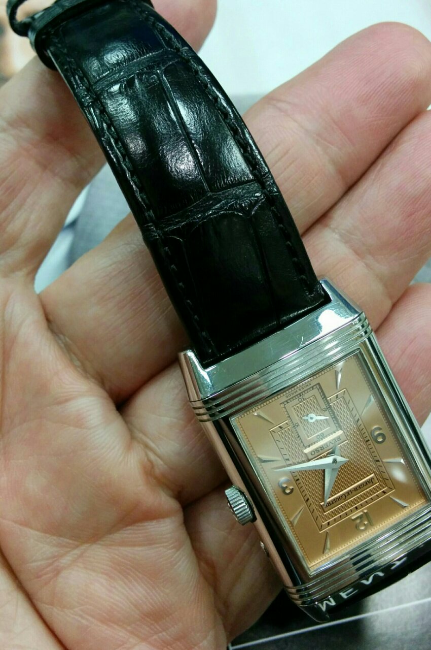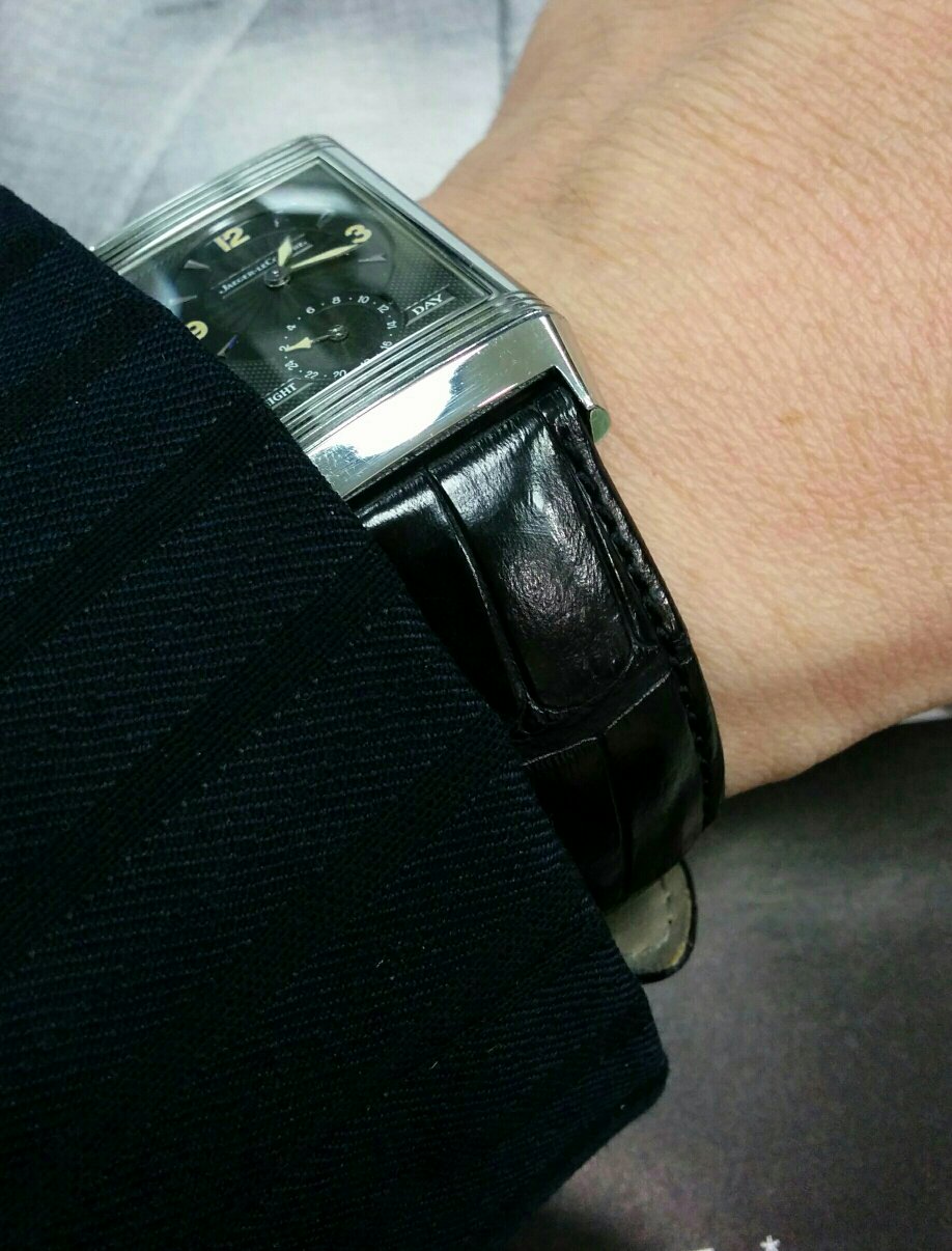 レベルソにつけた黒のアリゲーターはグラスフュッテ製。