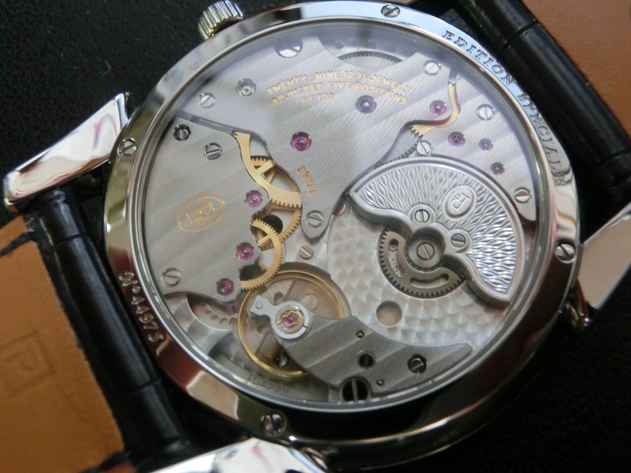ムーブメントを見るとやはり圧巻のプラチナマイクロローター(キャリバーはPF 701になっています。)