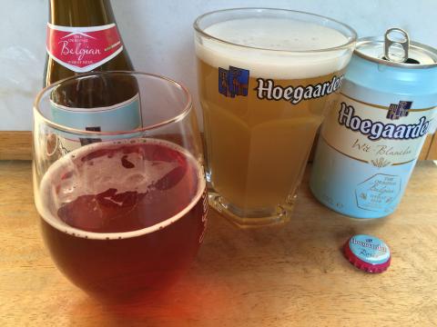 違うベルギービールの醸造所の「オンザロックス」グラスで。
