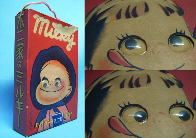 私が実際に見たものは目のセルロイドが日に焼けて茶褐色に変色してました。