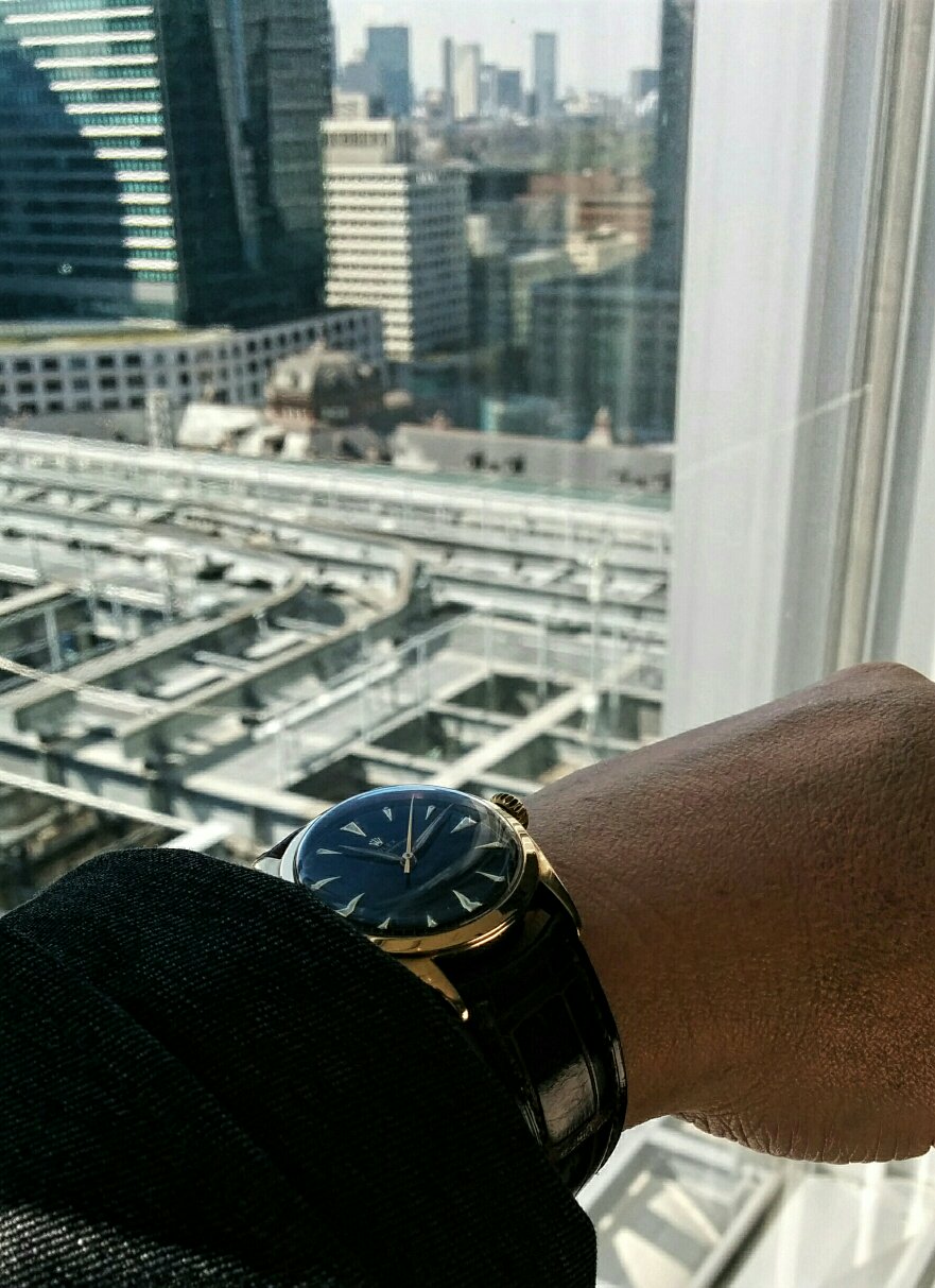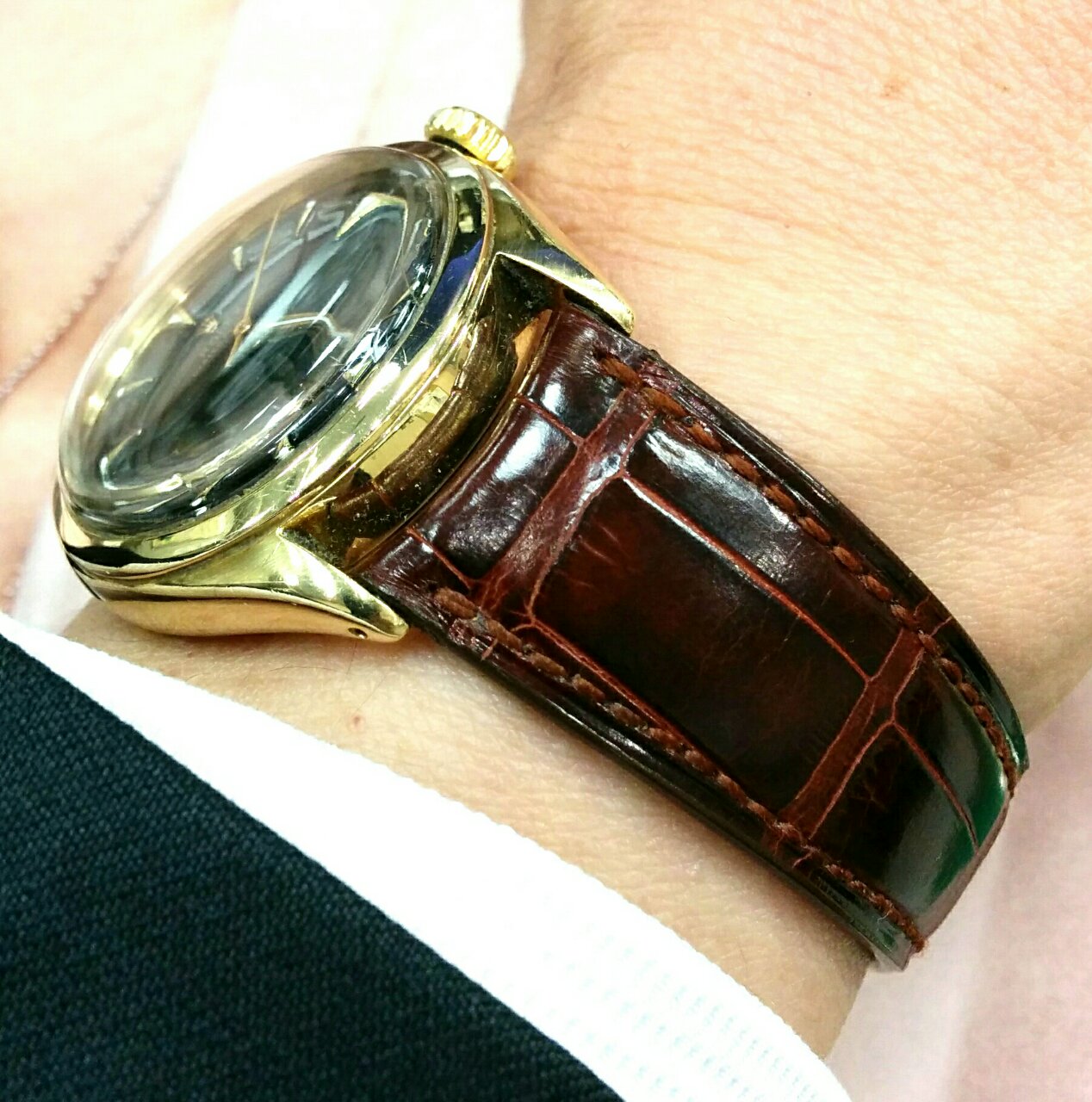 セミバブルバック14KYG ブラックミラーダイヤルです。
