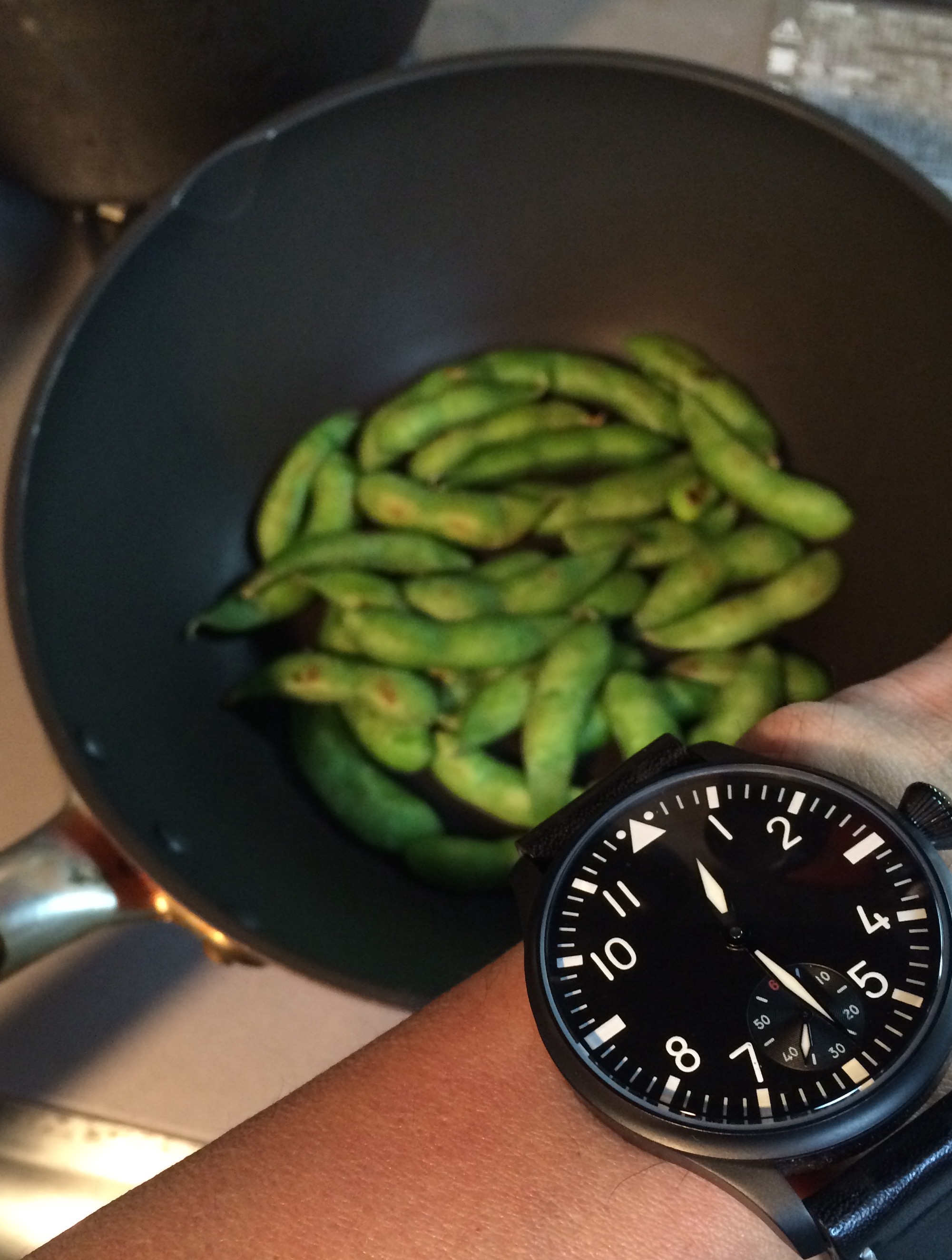 ひと手間加えるには、フライパン油なし強火で