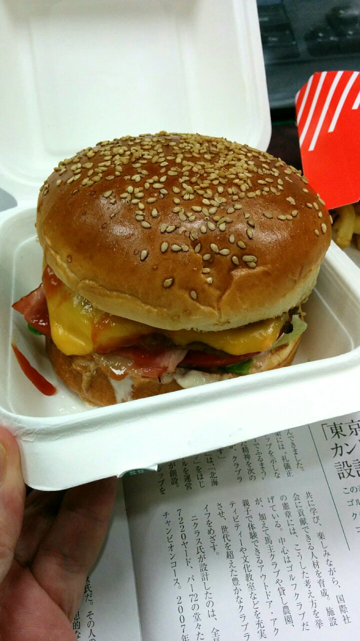 アメリカで食事として食べるハンバーガーはこれと同じくらい