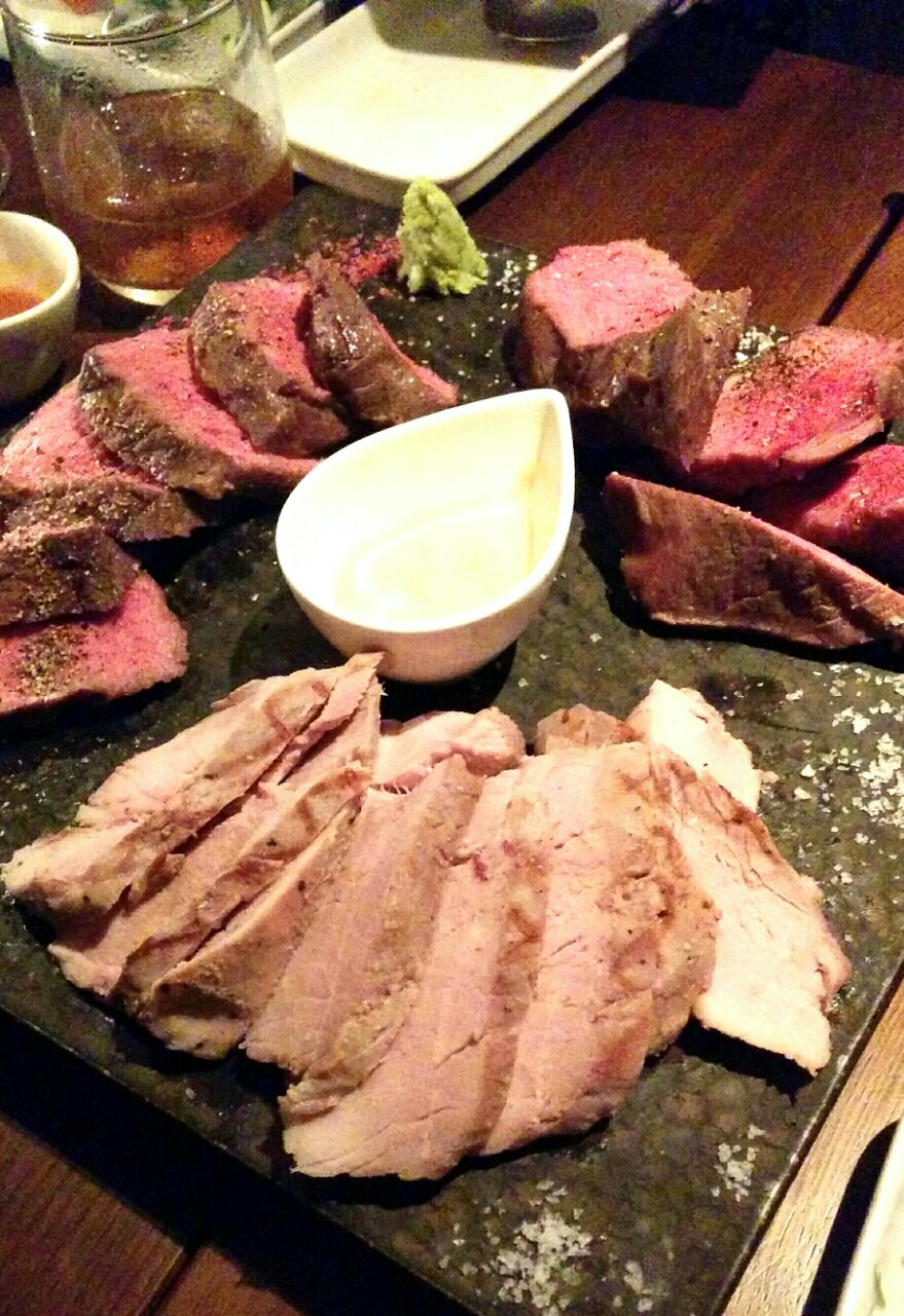 ギロッポンで熟成肉とフォアグラと雲丹のでスフレ、