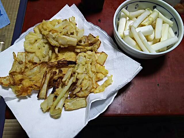近所のヒトが、親父にくれたウドを調理しました。