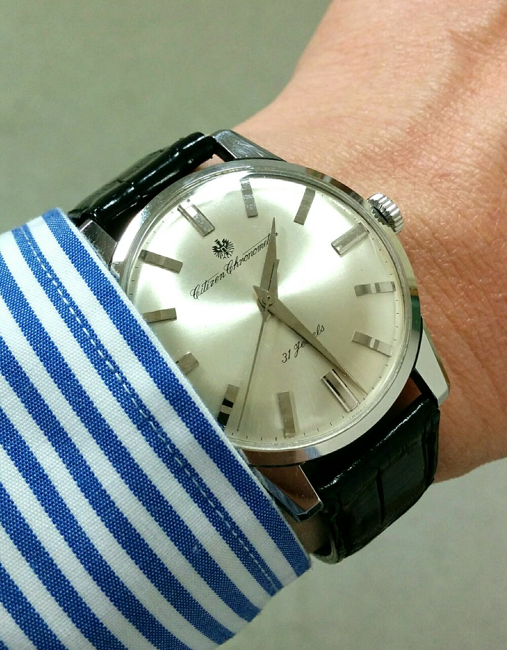 梅雨前のあがきで古い時計をつけてます。